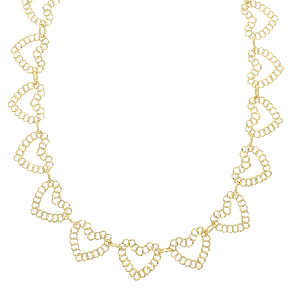 OPEN HEART LINKED CHARM NECKLACE IN GOLD TONE METAL