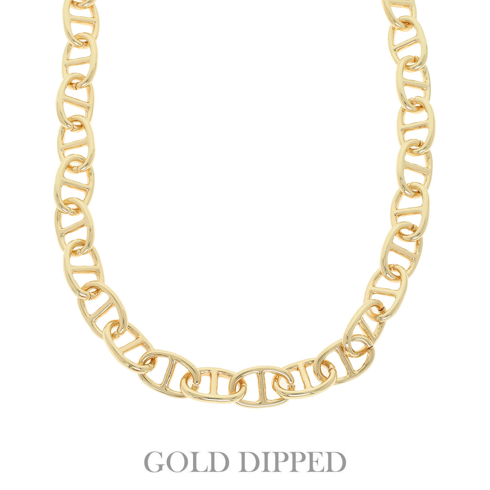 POLISHED SODA TAB LINK CHAIN NECKLACE IN YELLOW GOLD PLATING