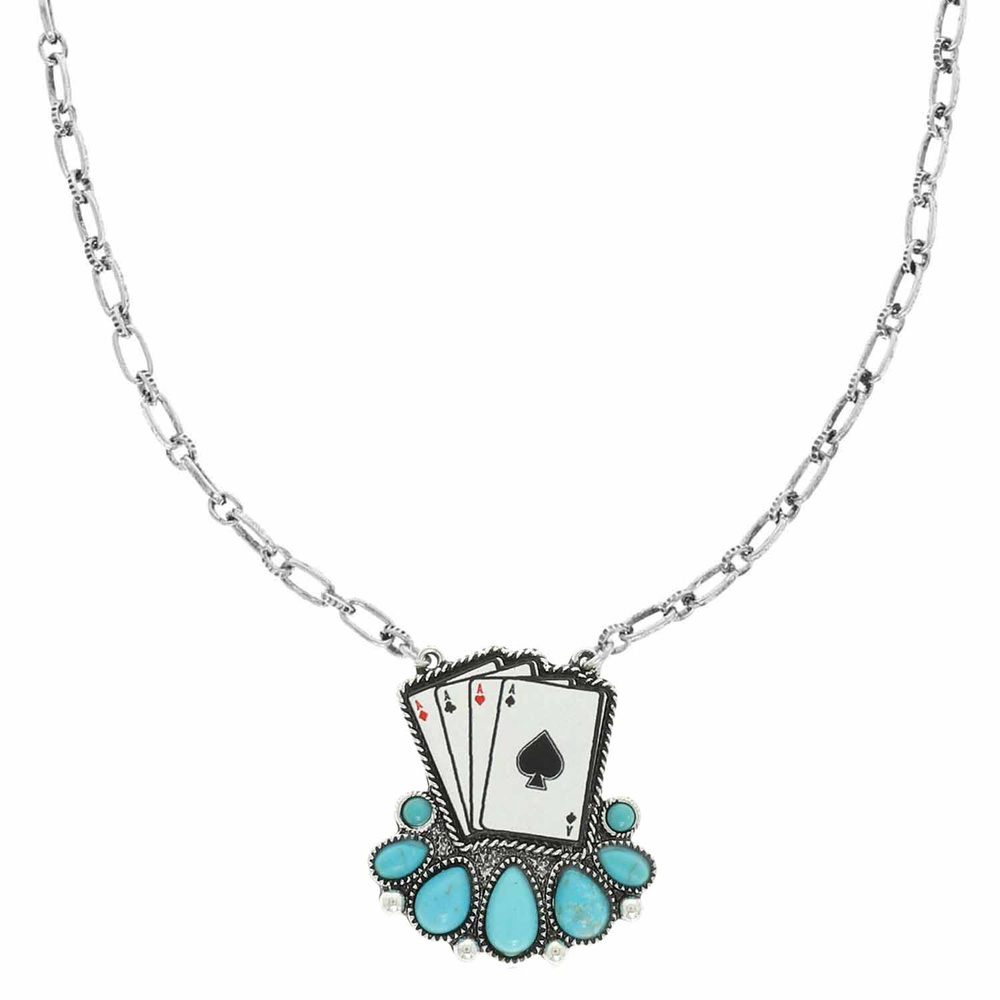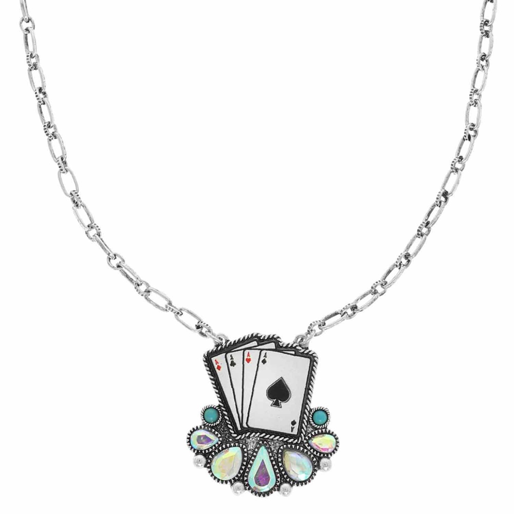 ACE OF SPADES PENDANT NECKLACE WITH CRYSTAL ACCENTS IN OXIDIZED SILVER TONE METAL