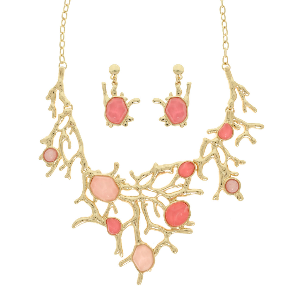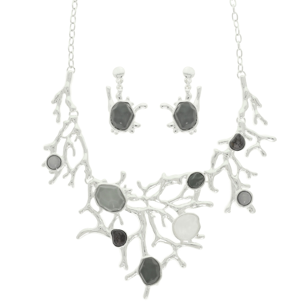 OPENWORK BRANCH NECKLACE EARRINGS SET WITH MARBLED RESIN ACCENTS