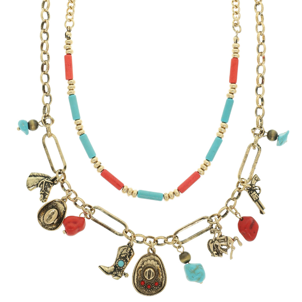 WESTERN THEME MULTI-STRAND TURQUOISE NECKALCE