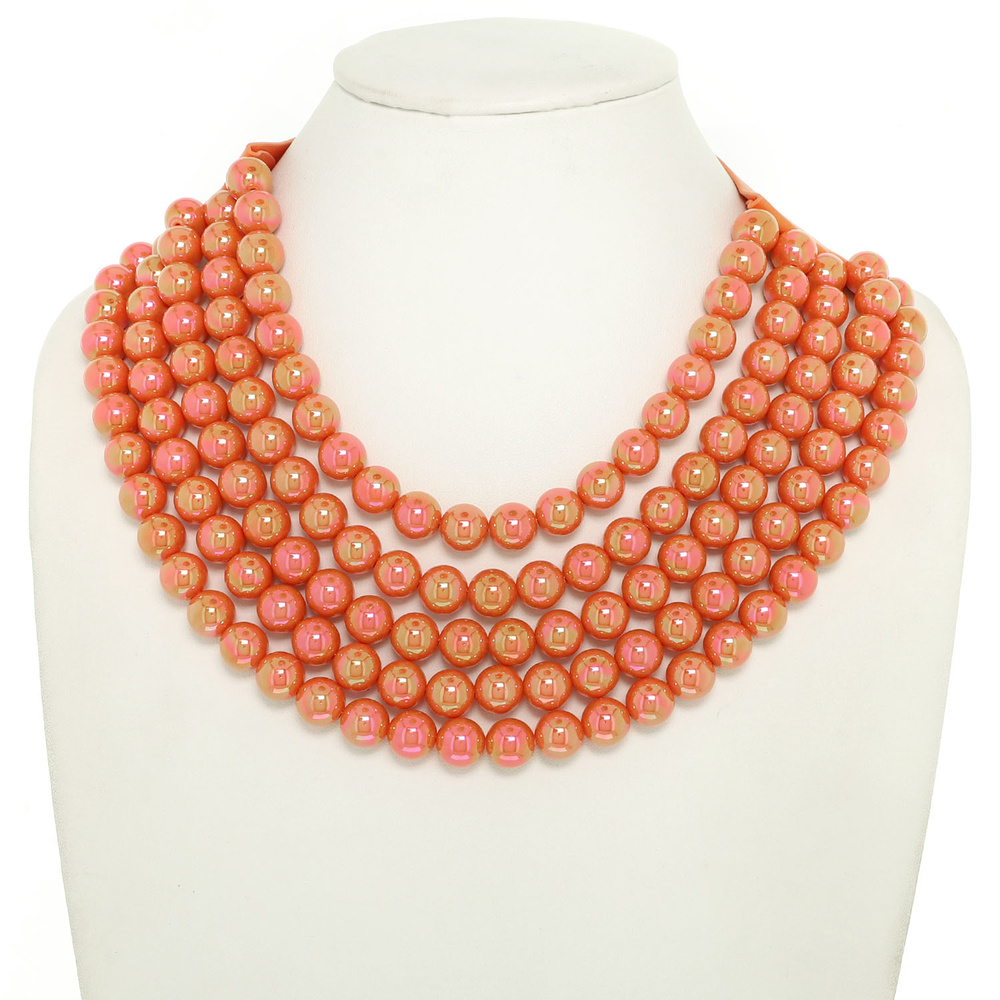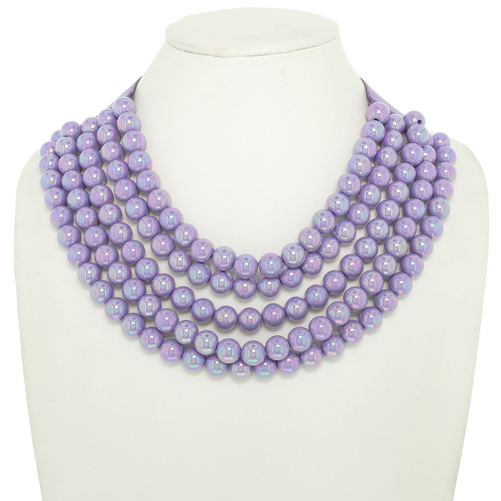 MULTI-STRAND METALLIC COLOR BEADED NECKLACE WITH FAUX LEATHER MAGNETIC CLOSURE BACKING