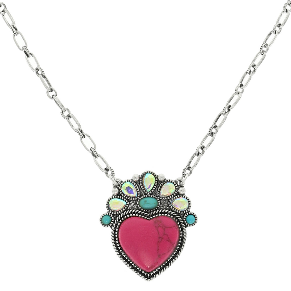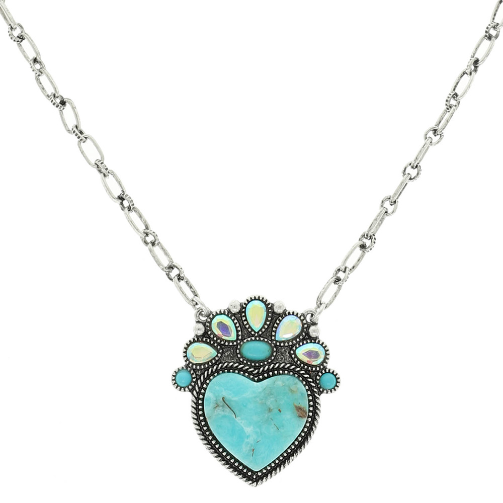 WESTERN TURQUOISE HEART PENDANT NECKLACE WITH CRYSTAL ACCENTS