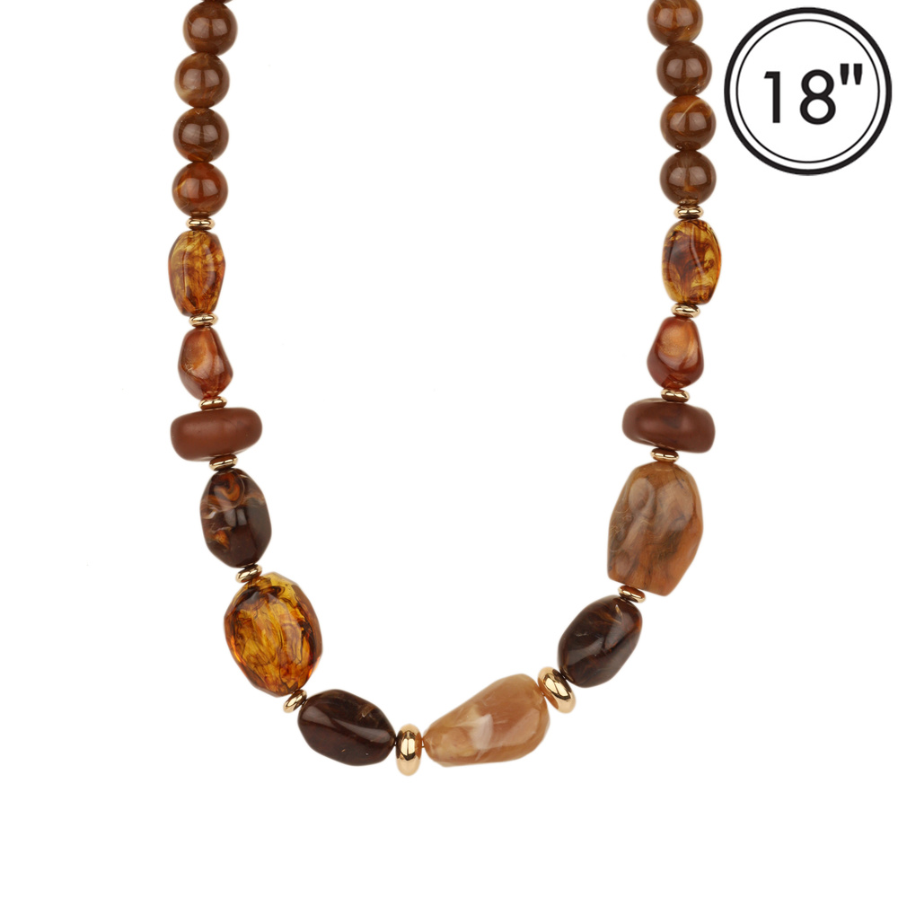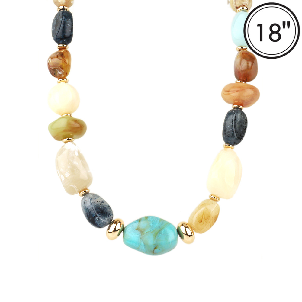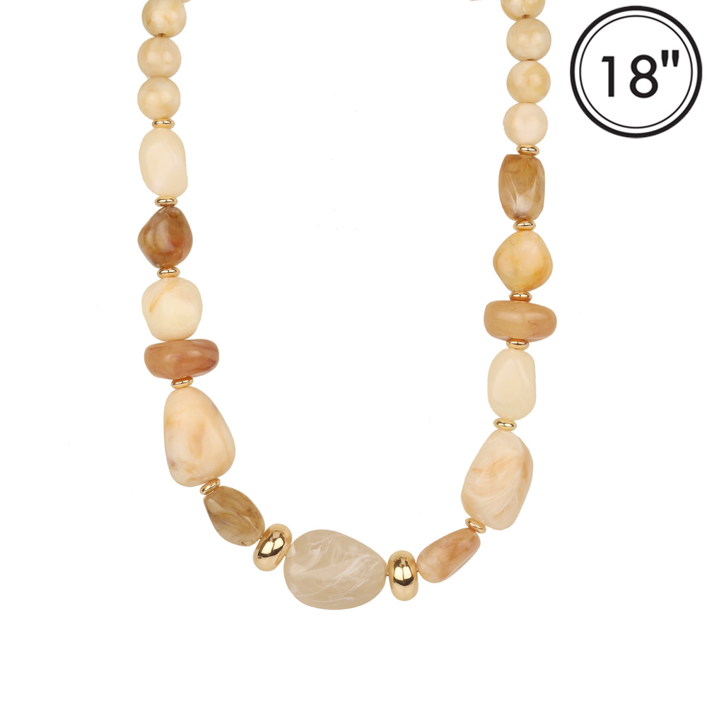 MARBLE BAROQUE STONE BEADED NECKLACE WITH GOLD TONE METAL ACCENTS