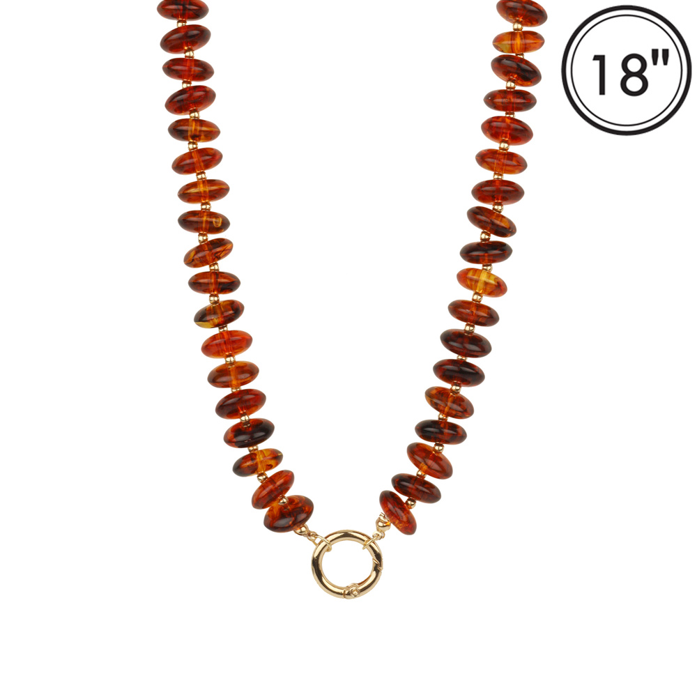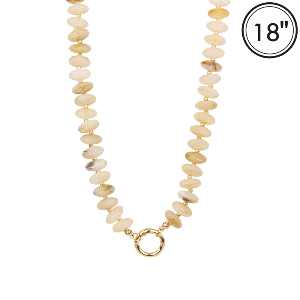 MARBLE DISC STONE BEADED NECKLACE WITH GOLD TONE METAL ACCENTS