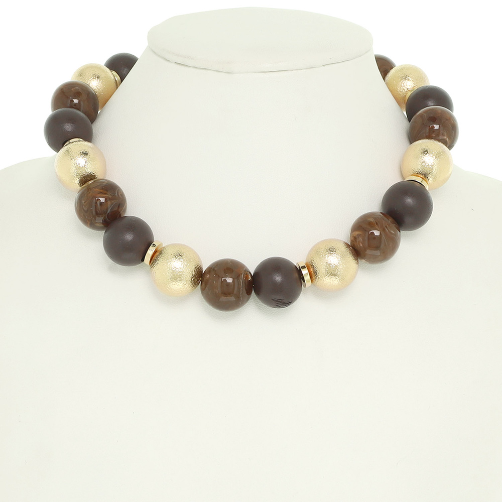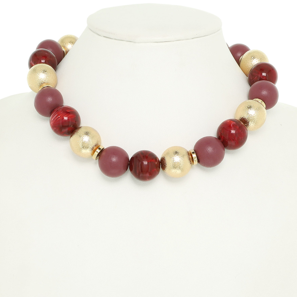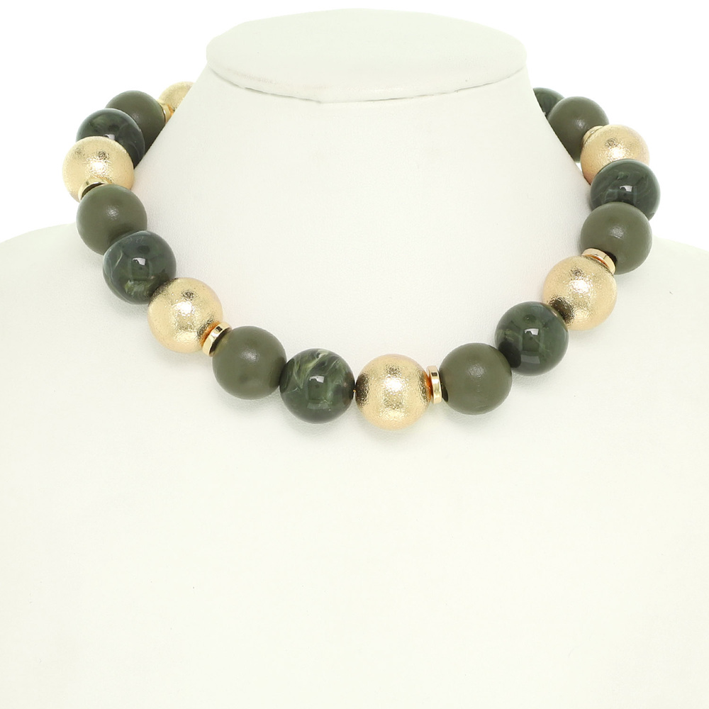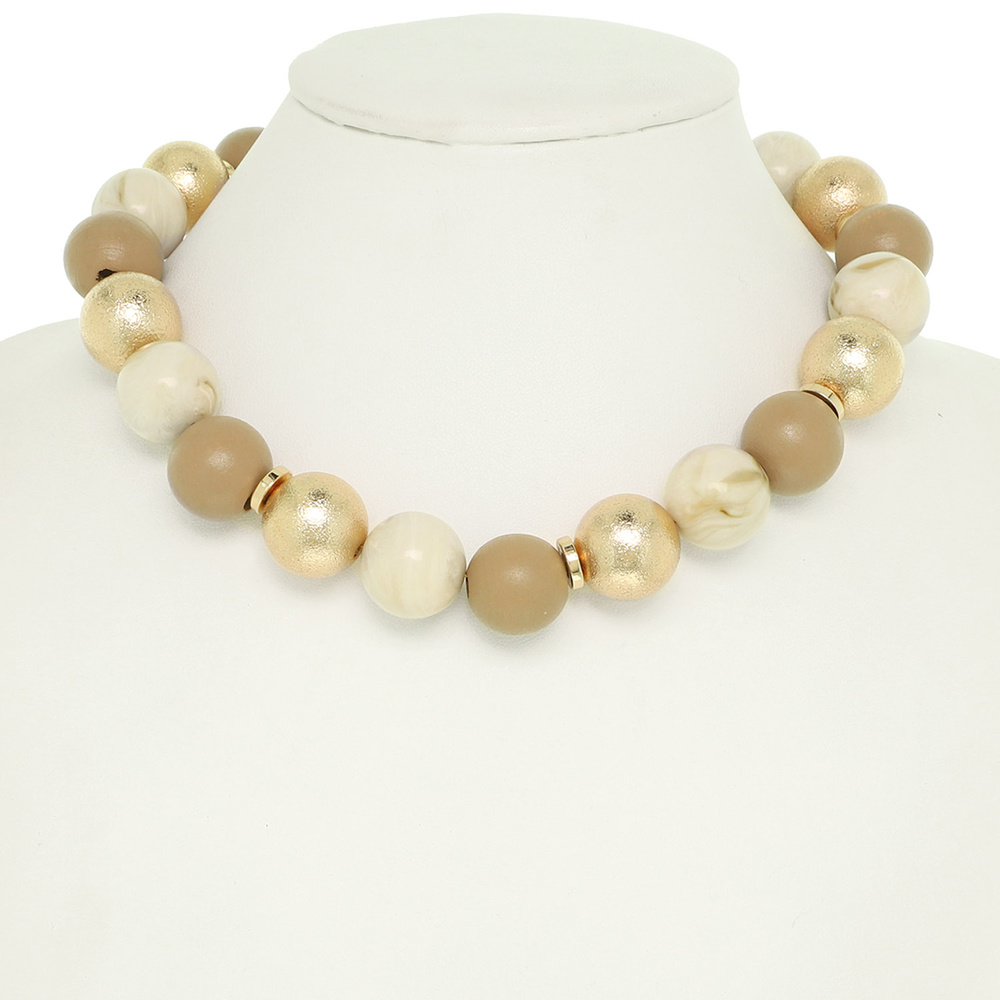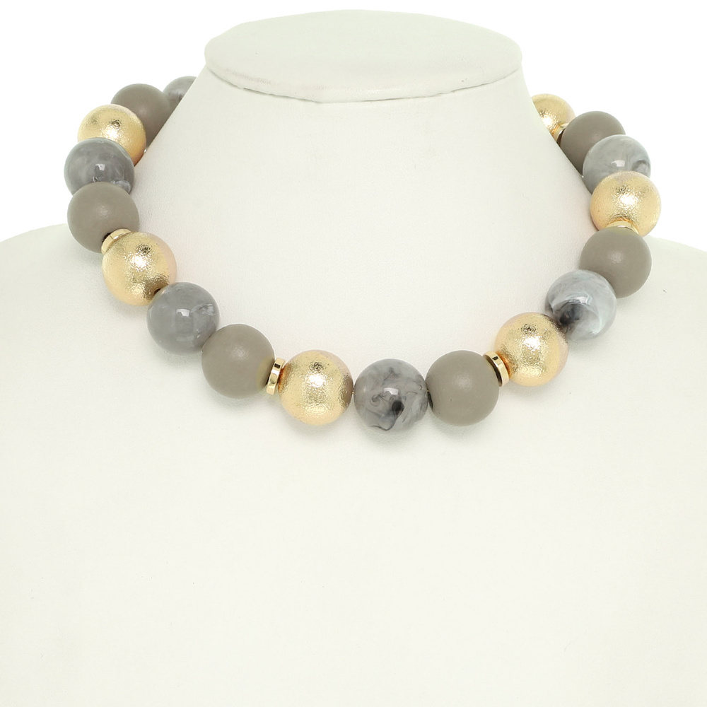 CHOKER TO PRINCESS LENGTH BEAD NECKLACE WITH MATTE MARBLE AND METALLIC MIXED BEADS