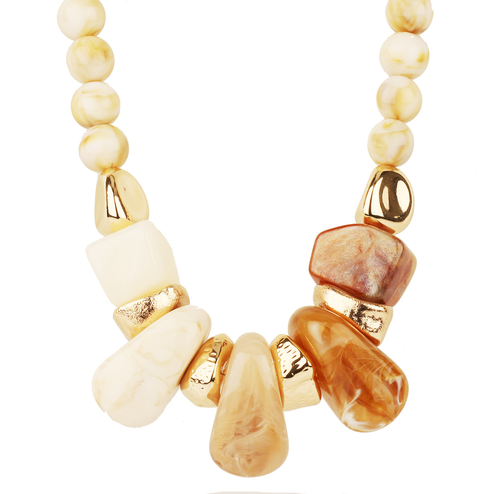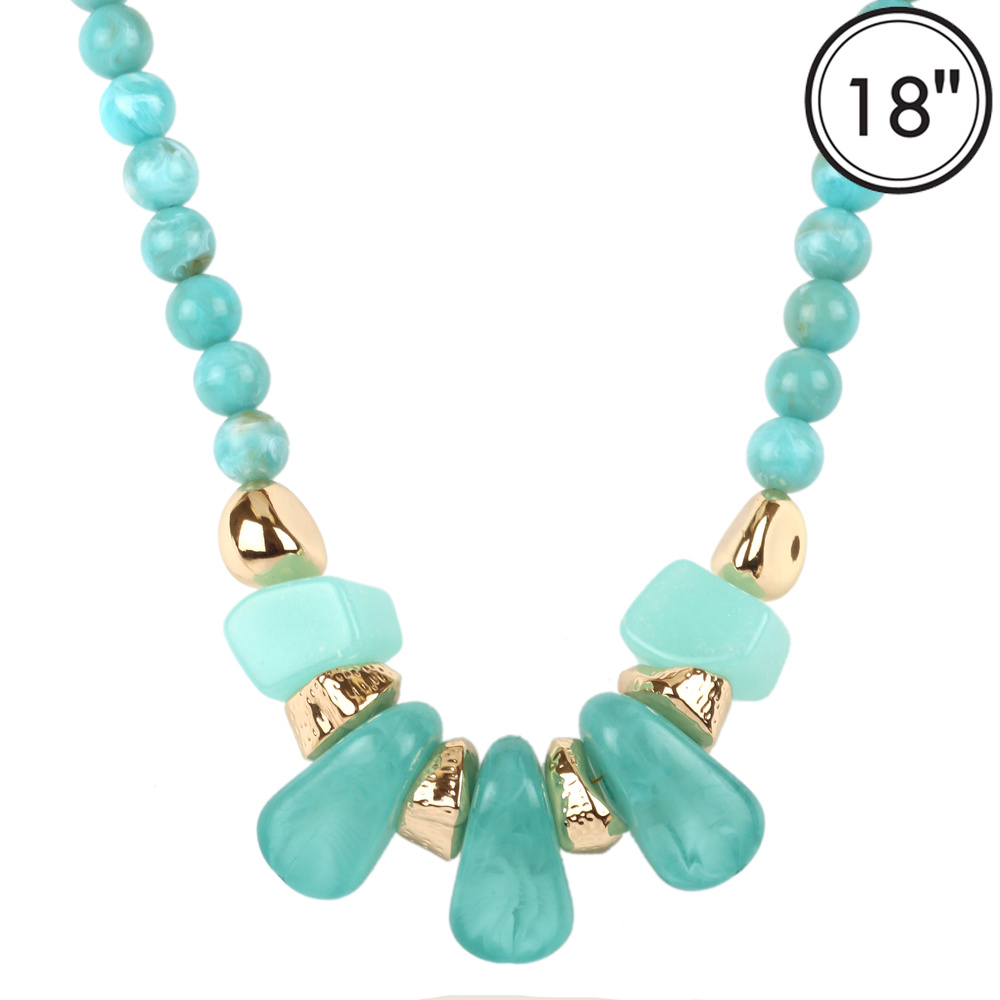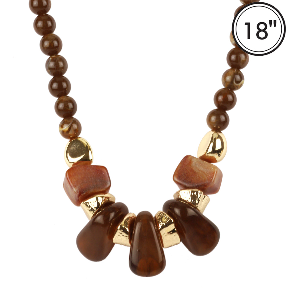 MARBLE STONE BEAD NECKLACE WITH MIXED SHAPES AND POLISHED GOLD TONE ACCENTS