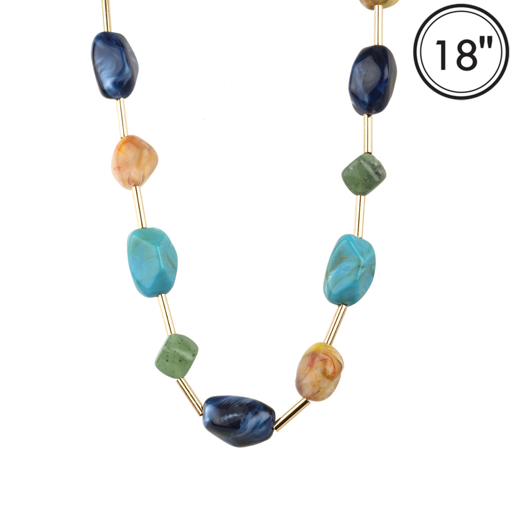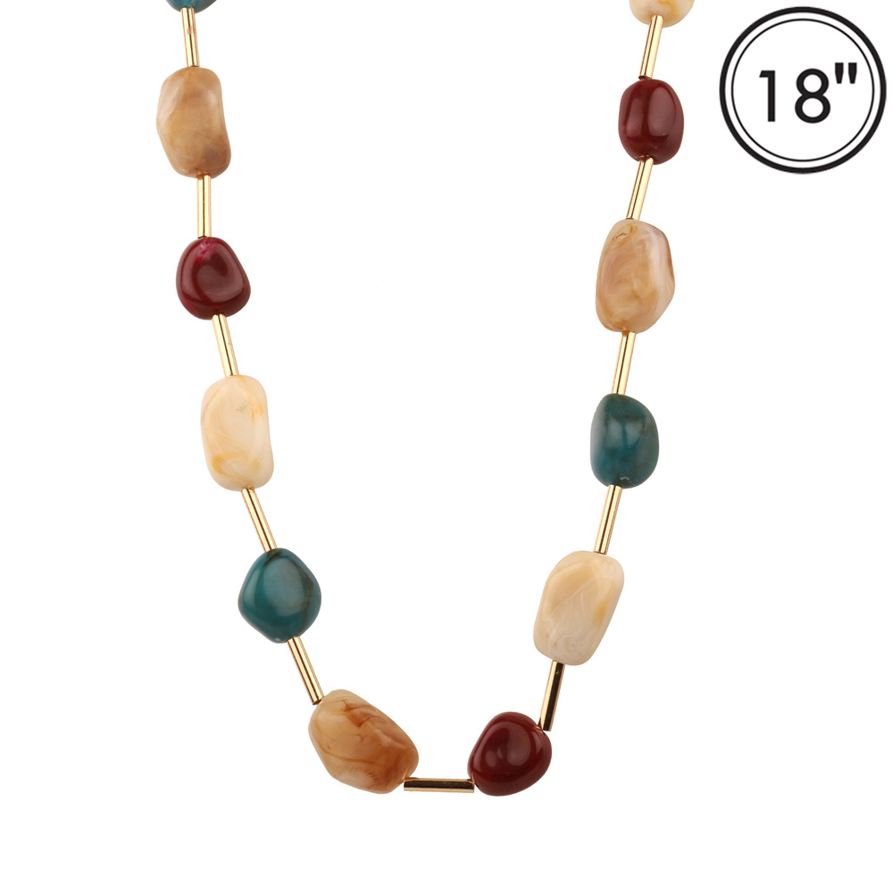 MARBLE ROUND RESIN BEAD NECKLACE WITH GOLD TONE METAL