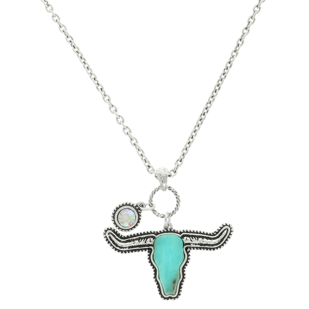 WESTERN TURQUOISE STEER HEAD PENDANT NECKLACE WITH CRYSTAL ACCENT