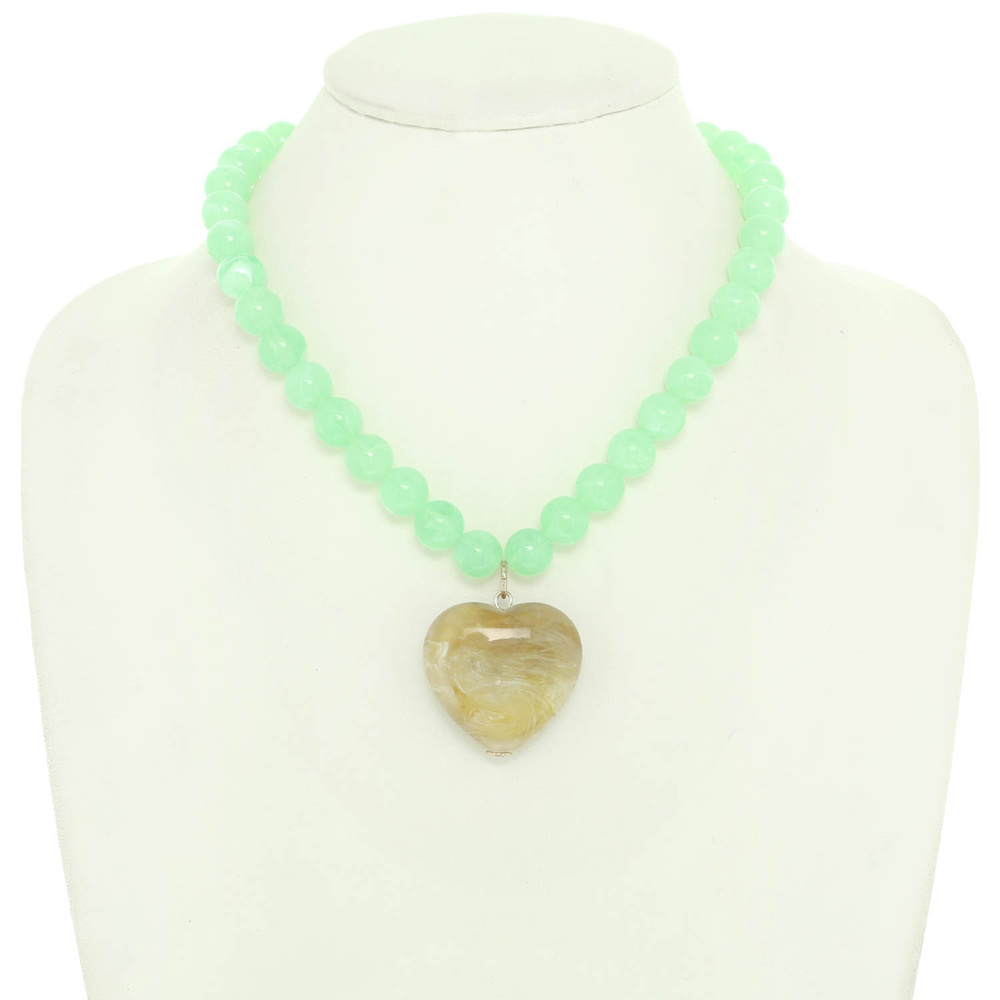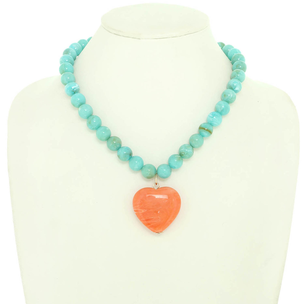 MARBLE HEART PENDANT NECKLACE WITH PEARL BEADED CHAIN