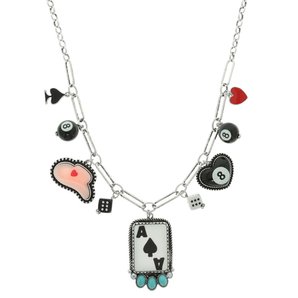 WESTERN ACE OF SPADES MULTI CHARM SET WITH DICE EIGHT BALL HEART AND CARD TRINKETS