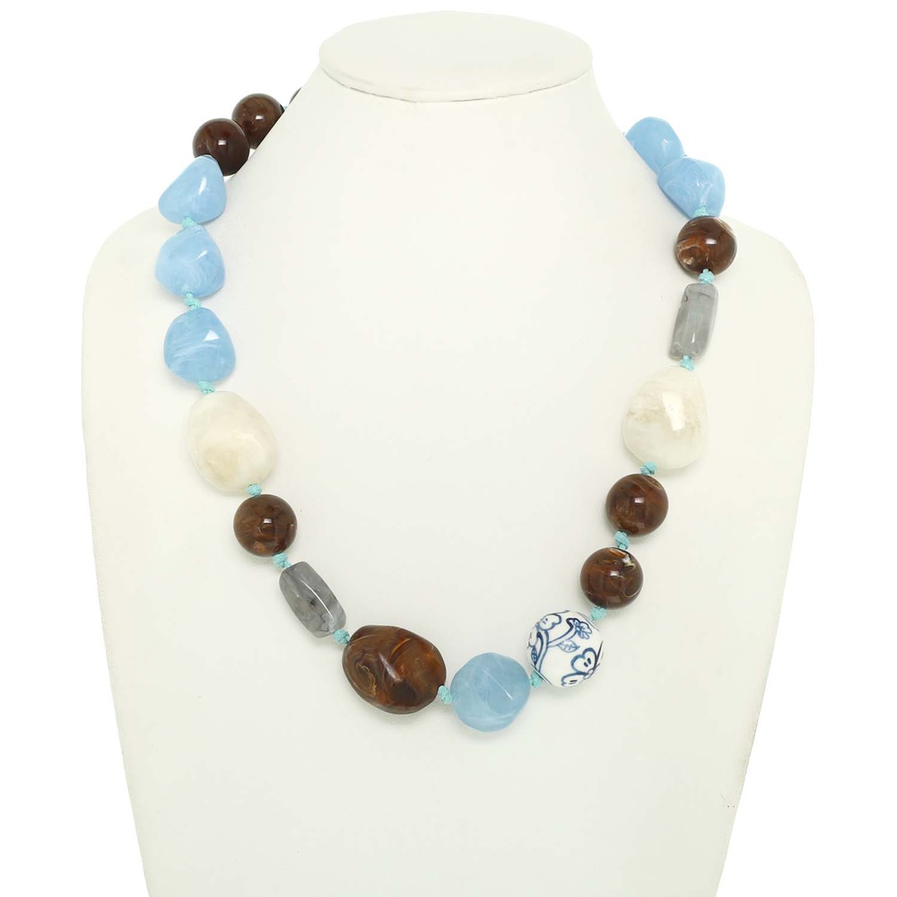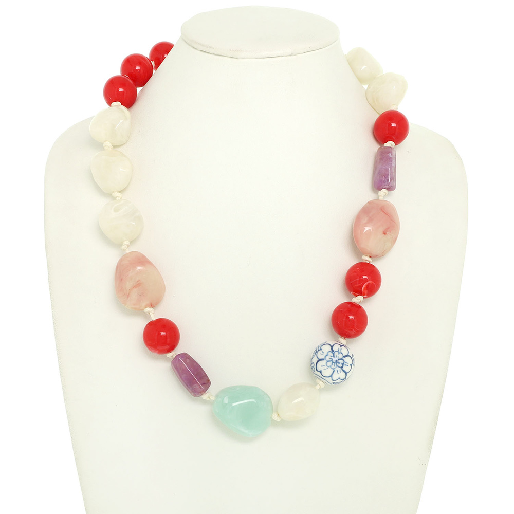 MARBLE PASTEL STONE KNOTTED BEAD NECKLACE WITH PORCELAIN PRINT