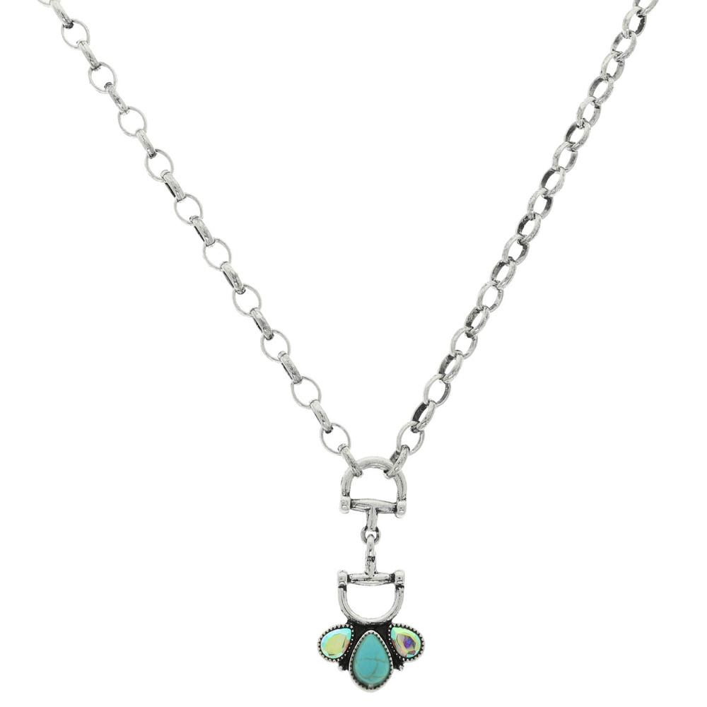 WESTERN TURQUOISE CRYSTAL SNAFFLE BIT PENDANT NECKLACE
