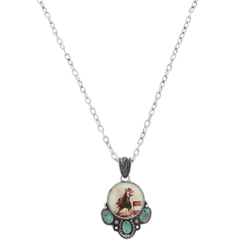 WESTERN RODEO RIDER PRINT PENDANT NECKLACE AND TURQUOISE STONES