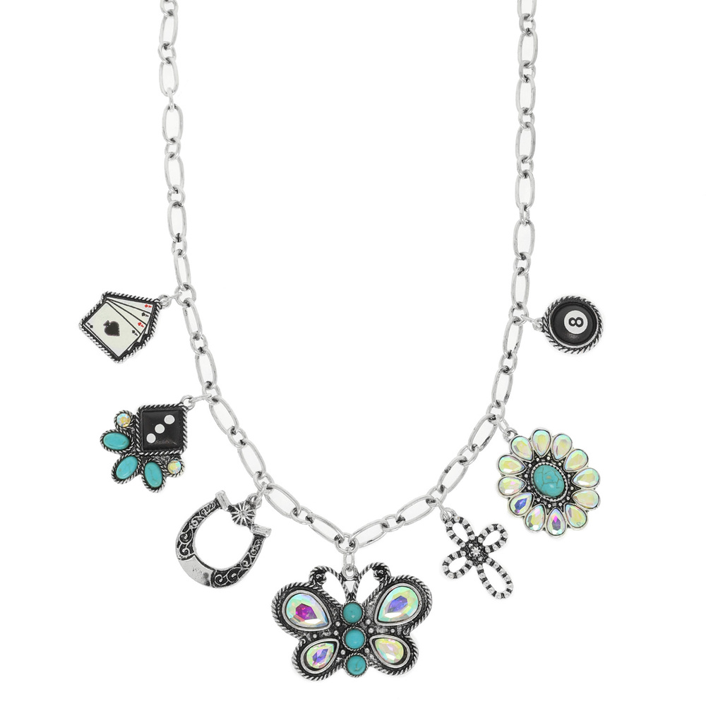 WESTERN MULTI CHARM NECKLACE WITH THEMED TURQUOISE TRINKETS
