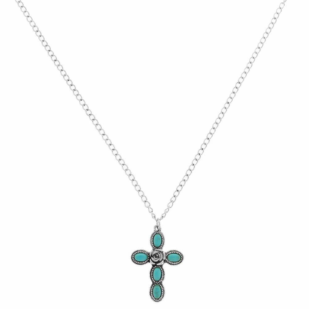WESTERN TURQUOISE CROSS NECKLACE WITH ROSE CENTER