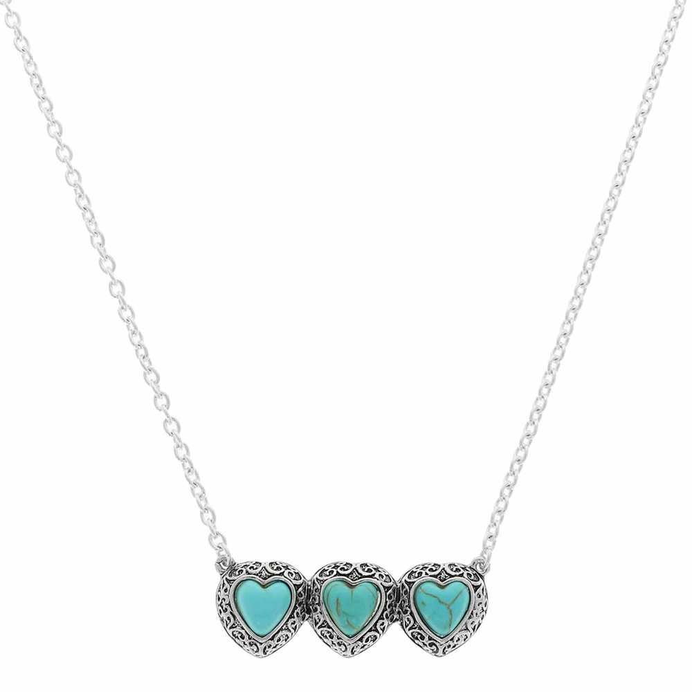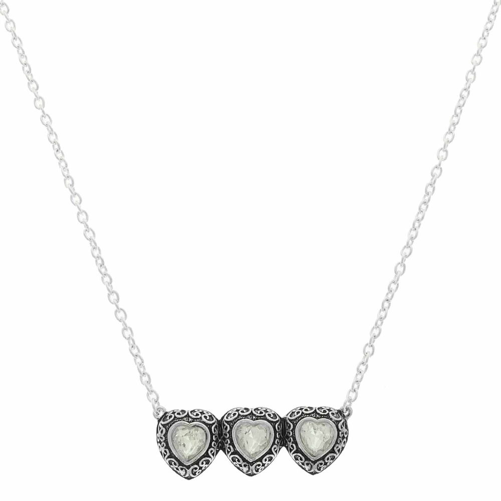 WESTERN FILIGREE THREE CRYSTAL HEART BAR NECKLACE