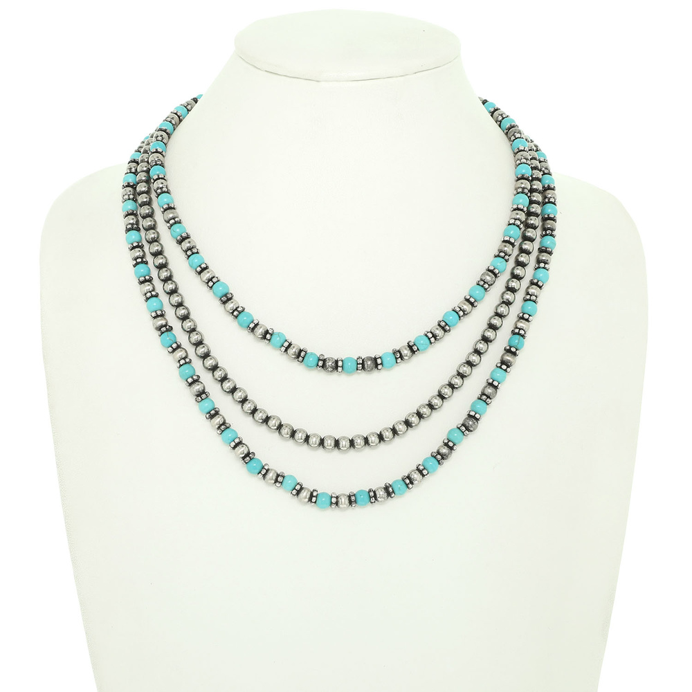WESTERN THREE STRAND NECKLACE WITH TURQUOISE AND SILVER-TONE BEADS