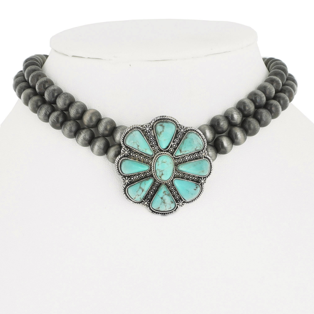 WESTERN STYLE TURQUOISE CONCHO PENDANT NAVAJO PEARL CHOKER NECKLACE