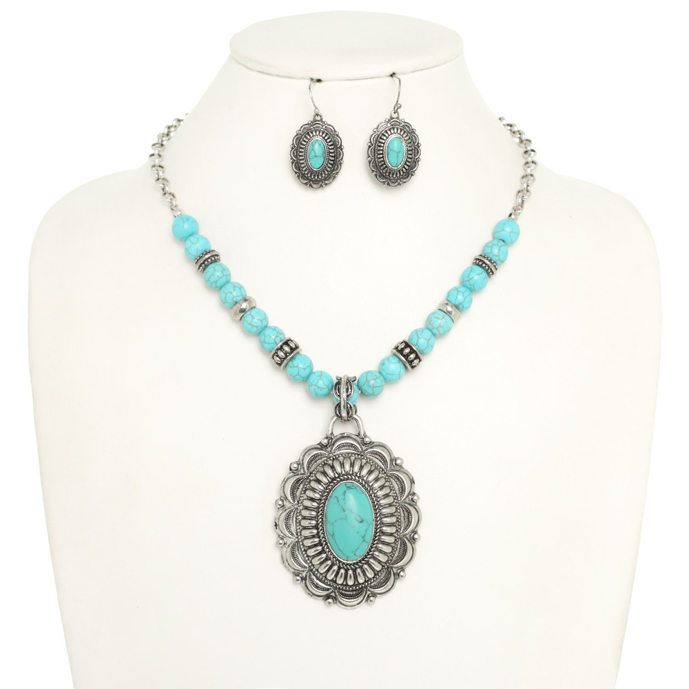 Western Oval Turquoise Concho Necklace Set