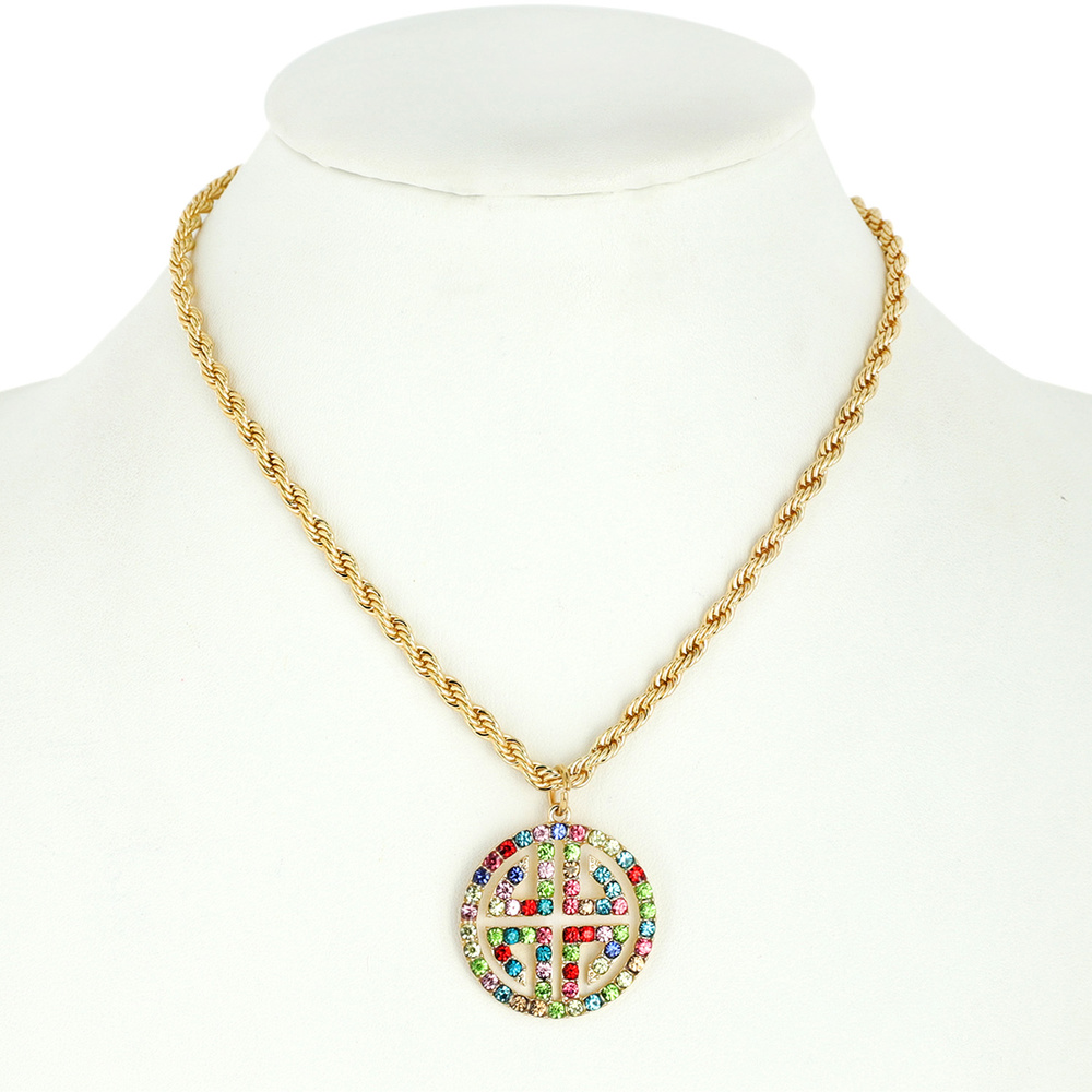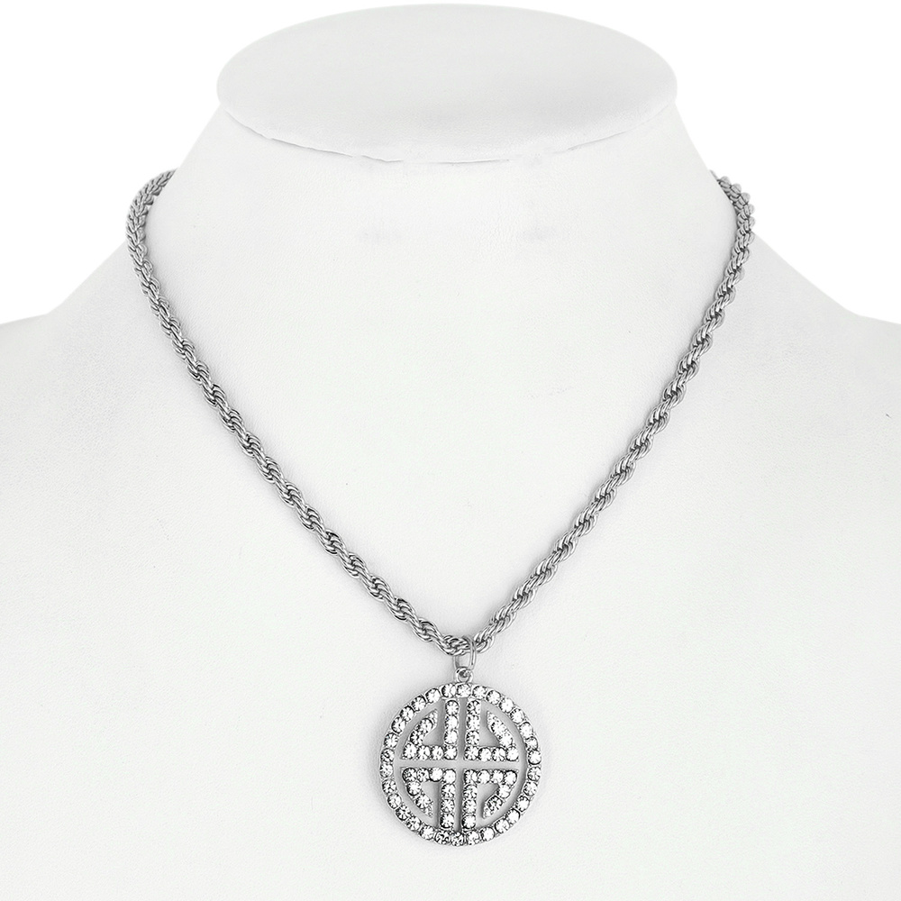 RHINESTONE ROUND ANCIENT GREEK KEY PENDANT NECKLACE