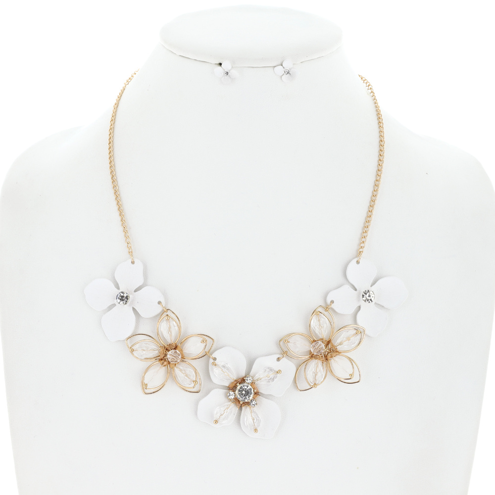 STATEMENT ACRYLIC FLORAL NECKLACE AND STUD EARRINGS SET