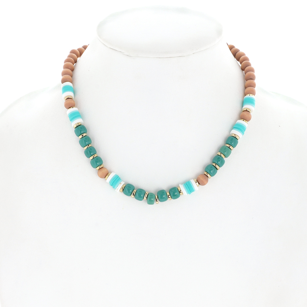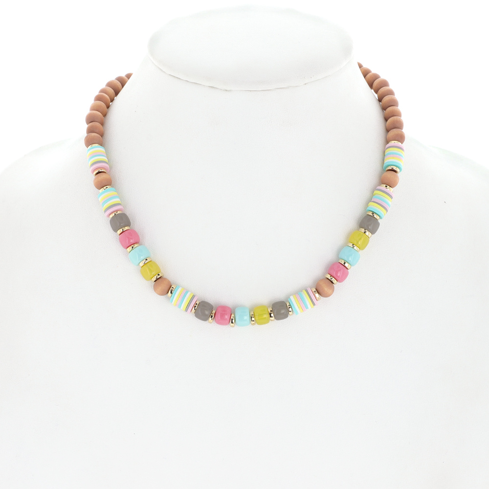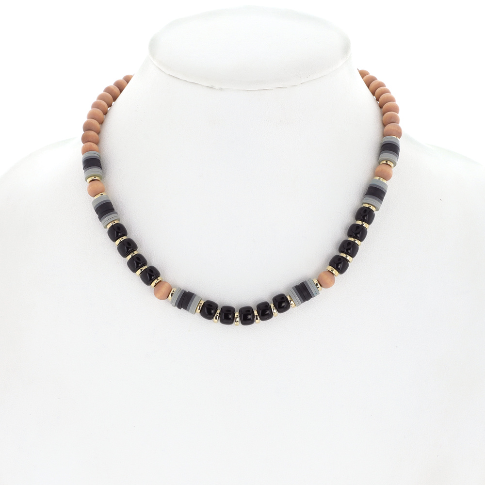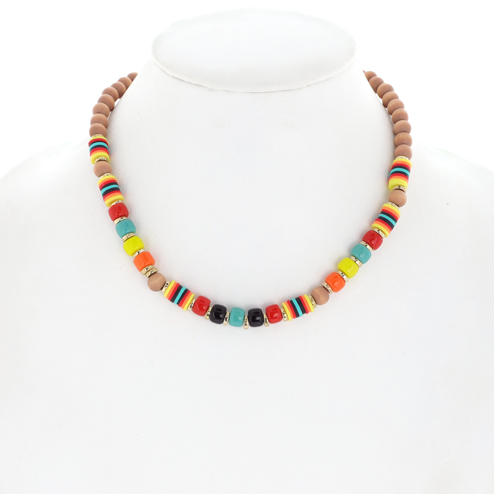 BOHEMIAN STYLE SANDALWOOD & PONY BEAD MULTI BEAD NECKLACE