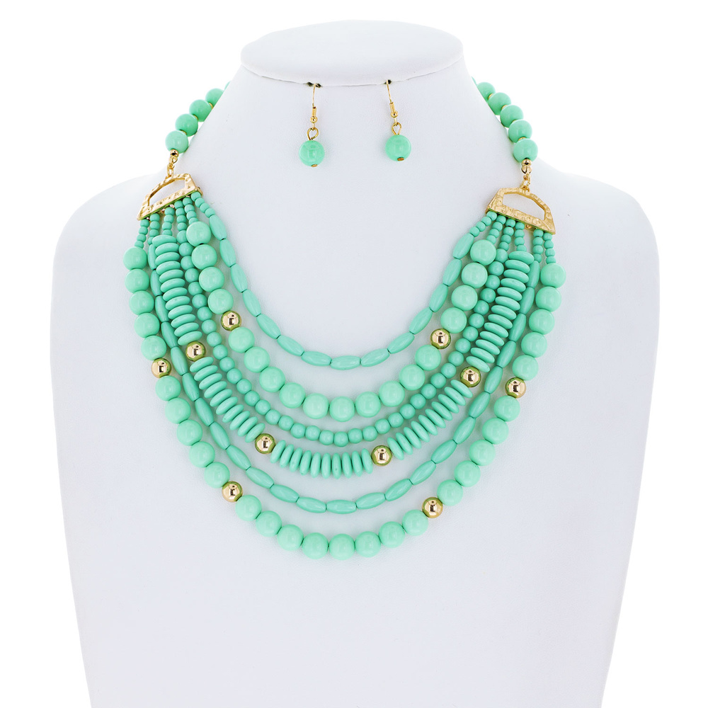 BOHEMIAN MULTISTRAND BEADED STATEMENT NECKLACE EARRING SET