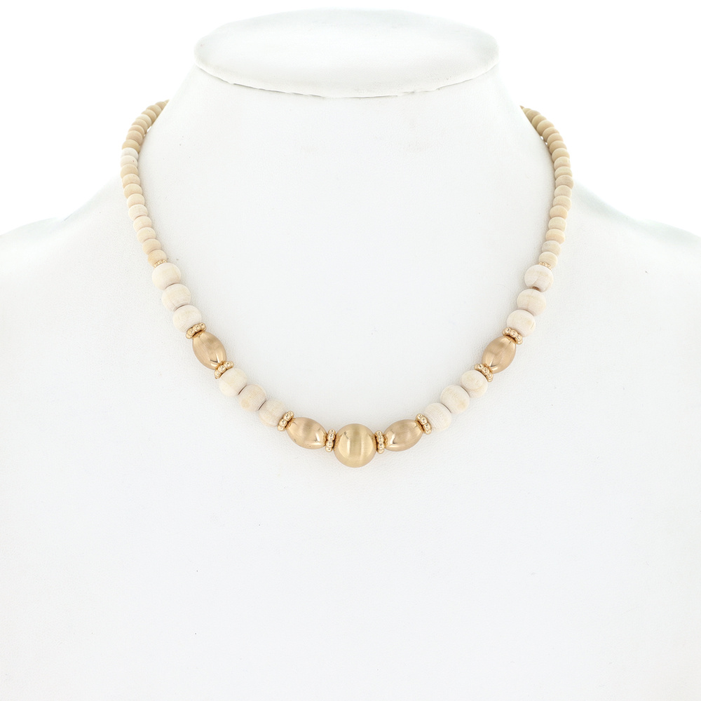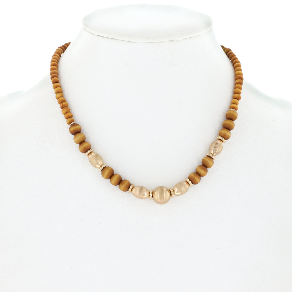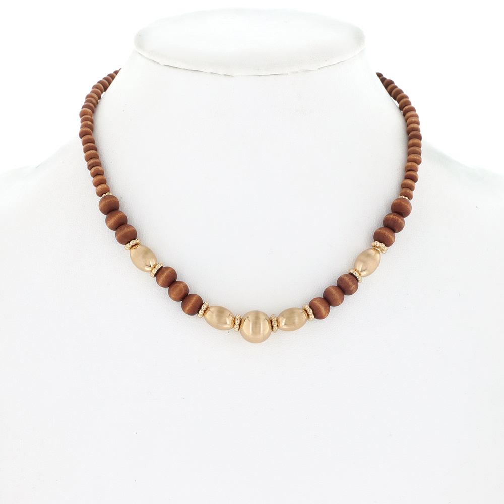 BOHEMIAN SANDALWOOD BEADED ADJUSTABLE NECKLACE WITH GOLD TONE METAL ACCENT BEADS