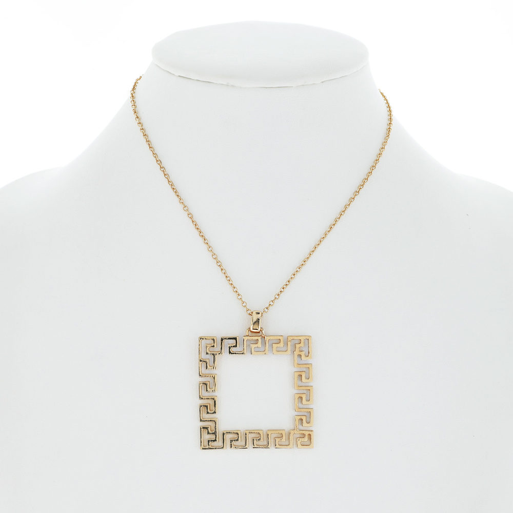 LARGE SQUARE GREEK KEY ADJUSTABLE PENDANT NECKLACE