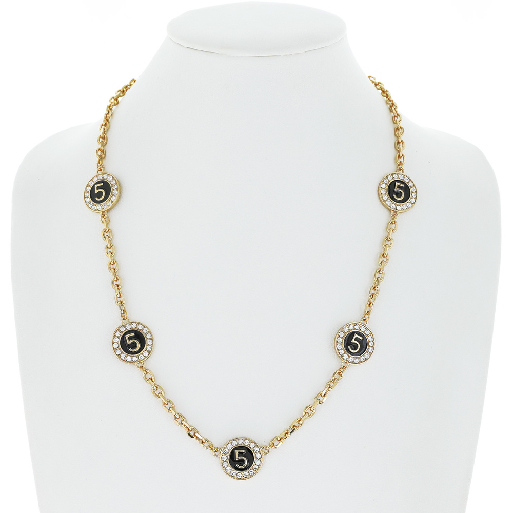 NUMBER FIVE ENAMEL COATED CRYSTAL RHINESTONE PAVE LONG STATION DISC CHAIN NECKLACE