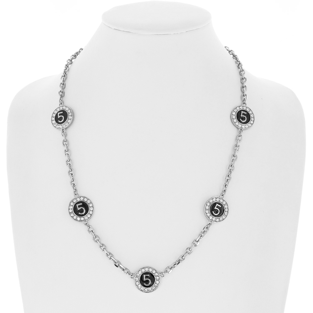 Number Five Enamel Coated Crystal Rhinestone Pave Long Station Disc Chain Necklace