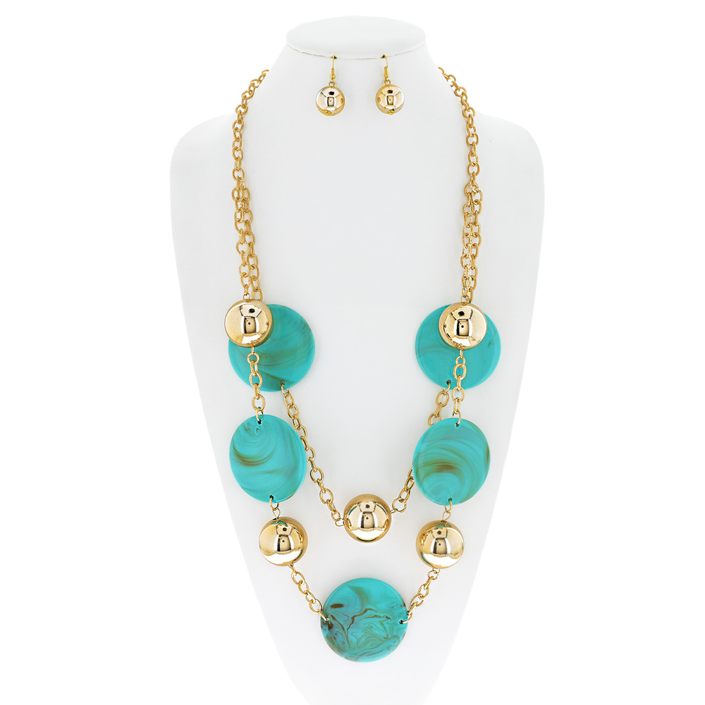 LENGTH: 34" EXTENSION: 2.5" DROP: 5" EARRINGS:1.5"