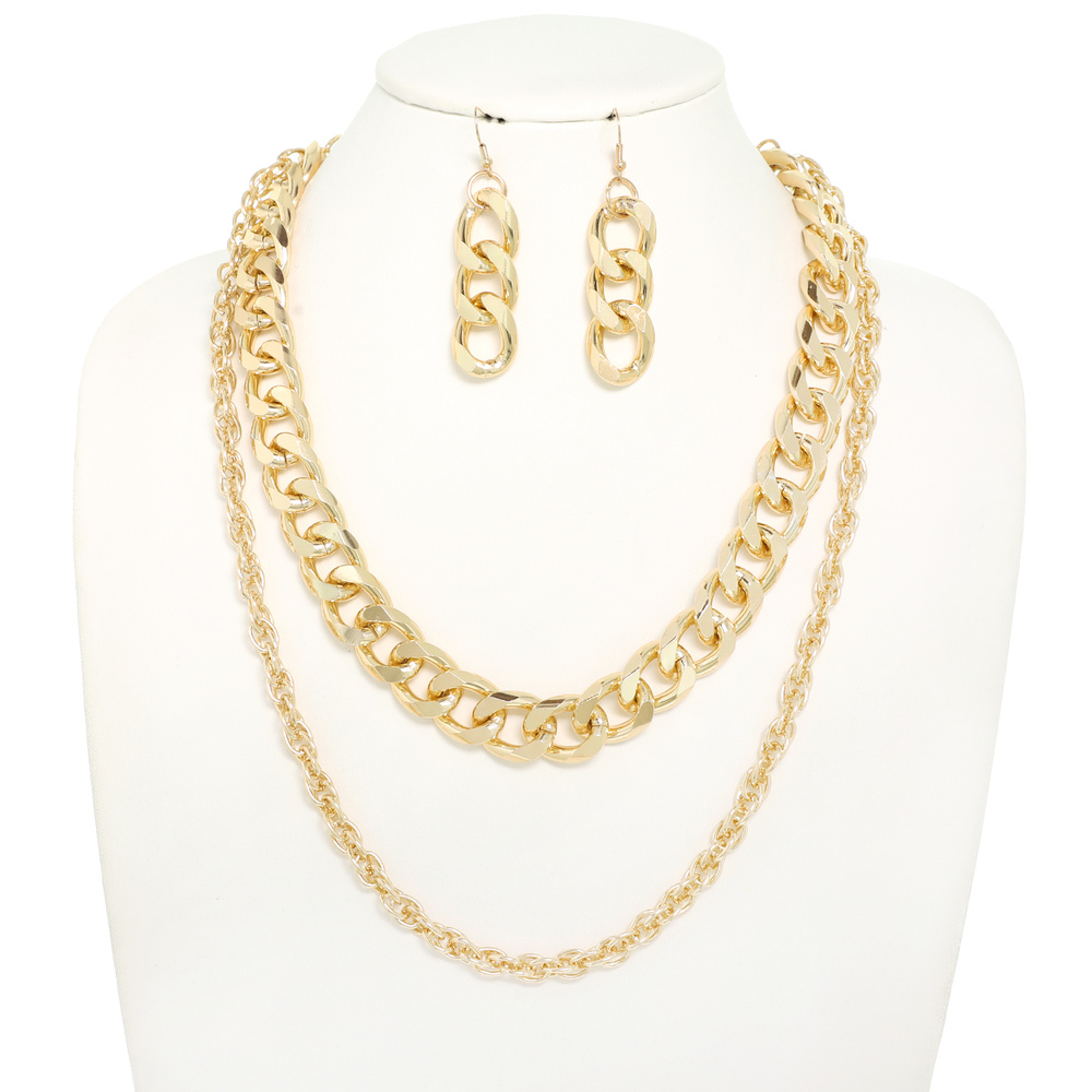 MULTI-STRAND CURB CHAIN NECKLACE EARRING SET