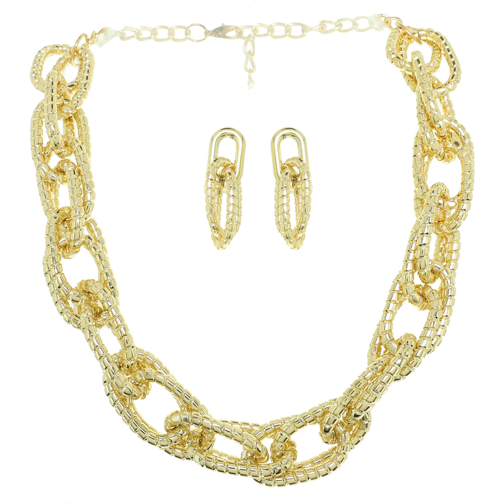 CHISELED PAPERCLIP CHAIN LINK NECKLACE EARRING SET
