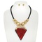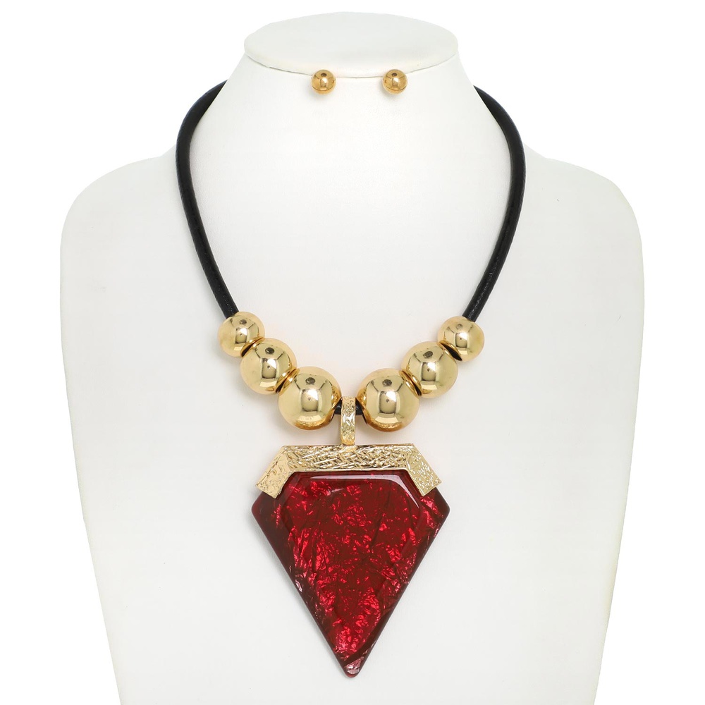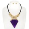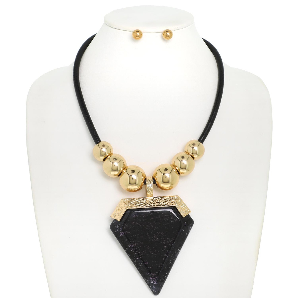 BOHO ALUMINUM EPOXY RESIN GEMSTONE ARROWHEAD GOLD METALLIC BEADED CORD NECKLACE EARRING SET