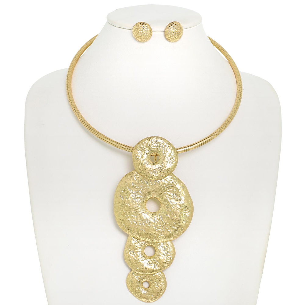 AFRICAN HAMMERED METAL MULTI DISC SNAKE TUBE COLLAR NECKLACE EARRING SET