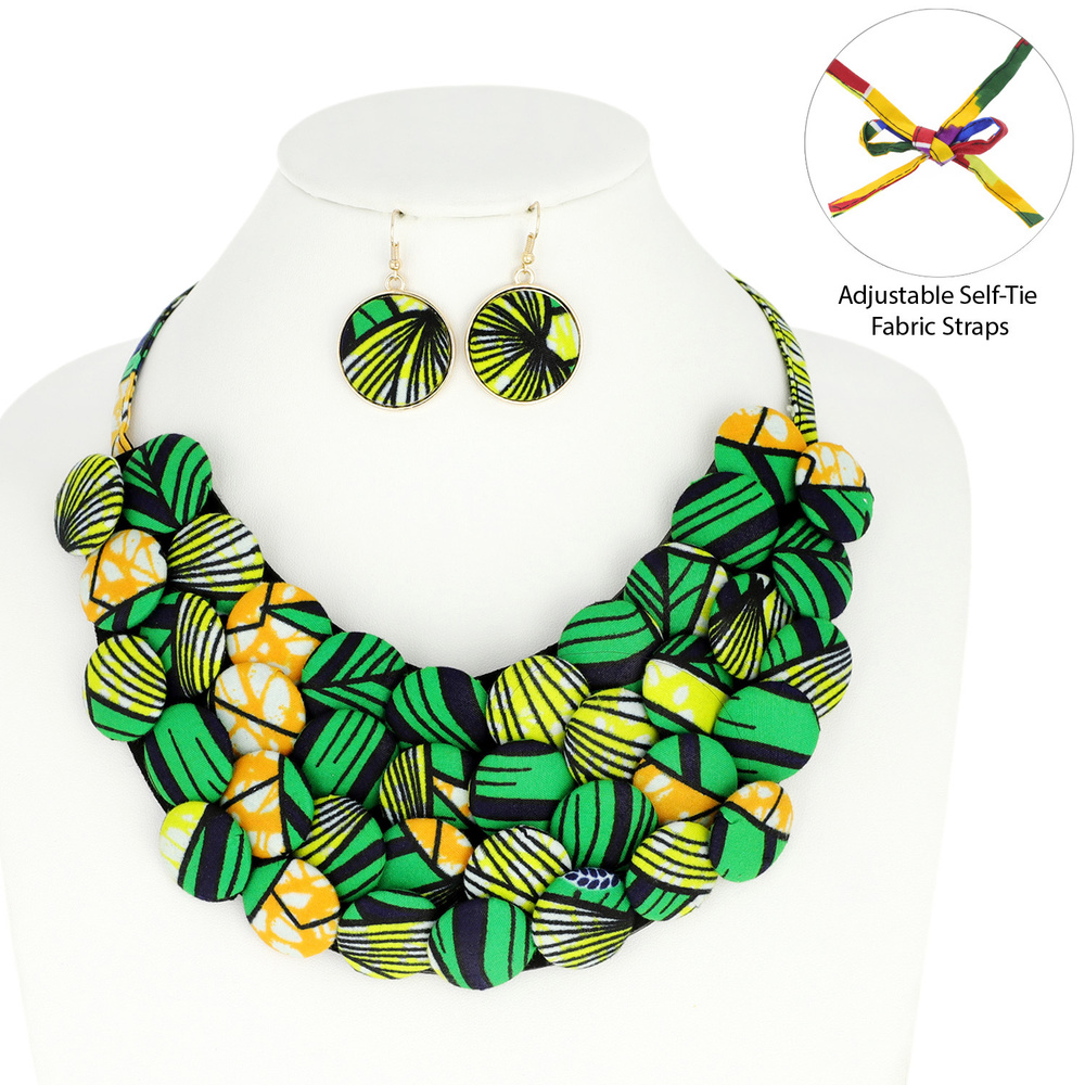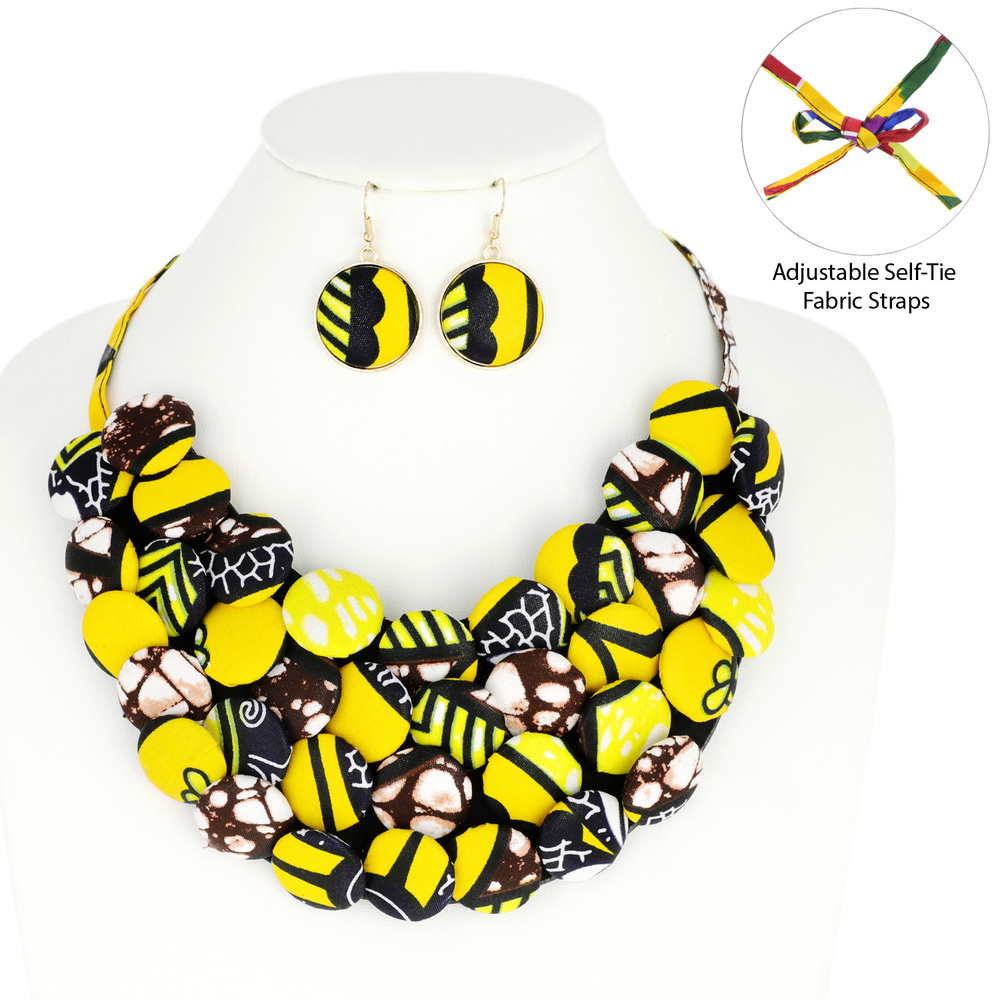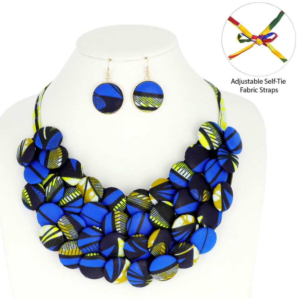 AFRICAN PRINT FABRIC BUTTON NECKLACE AND EARRINGS SET