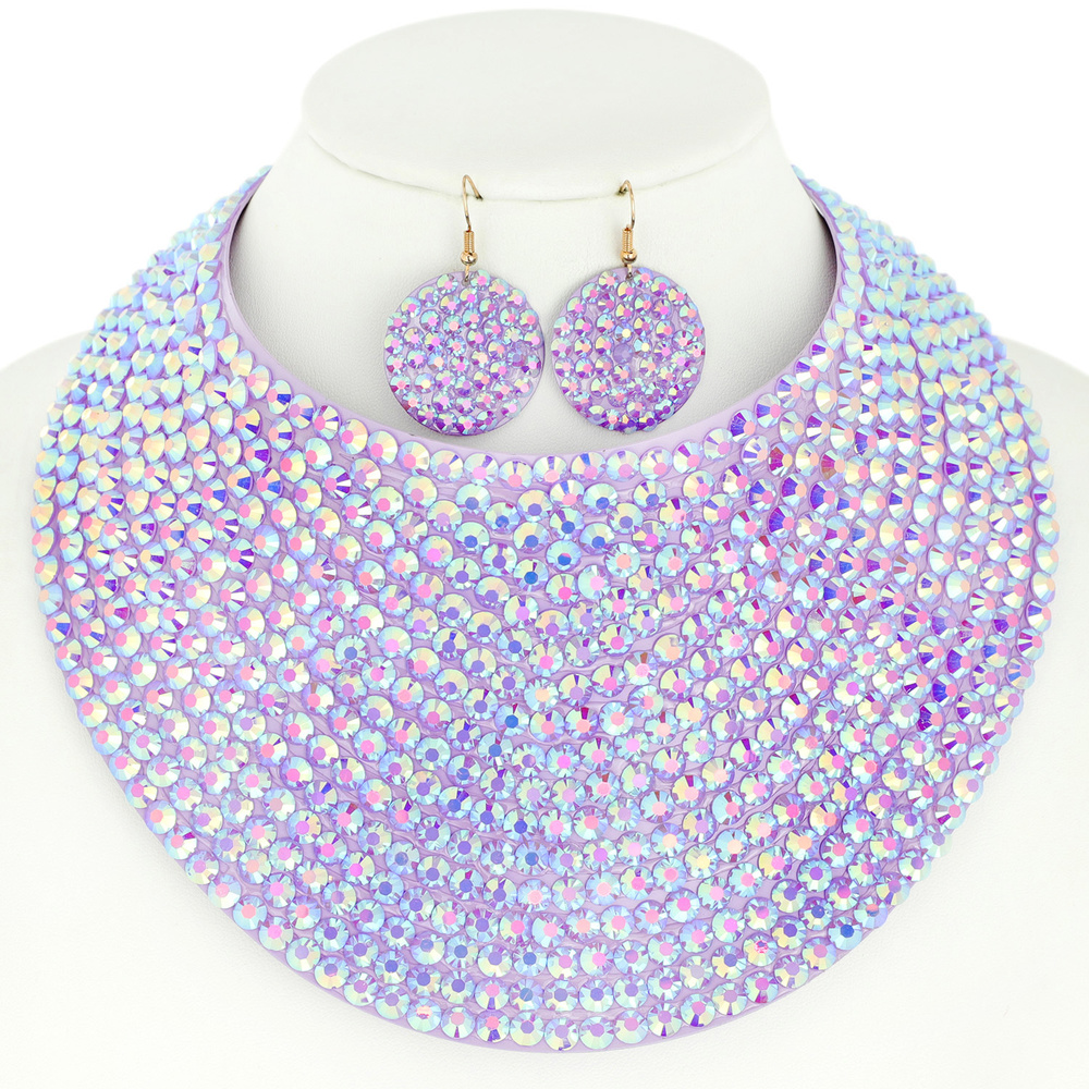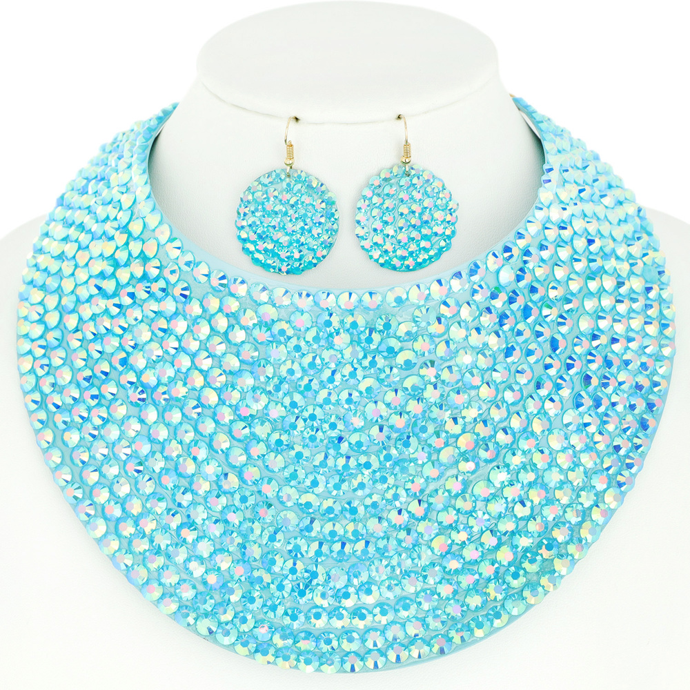Gem Stone Neck Bib Collar Choker Necklace And Earrings Set