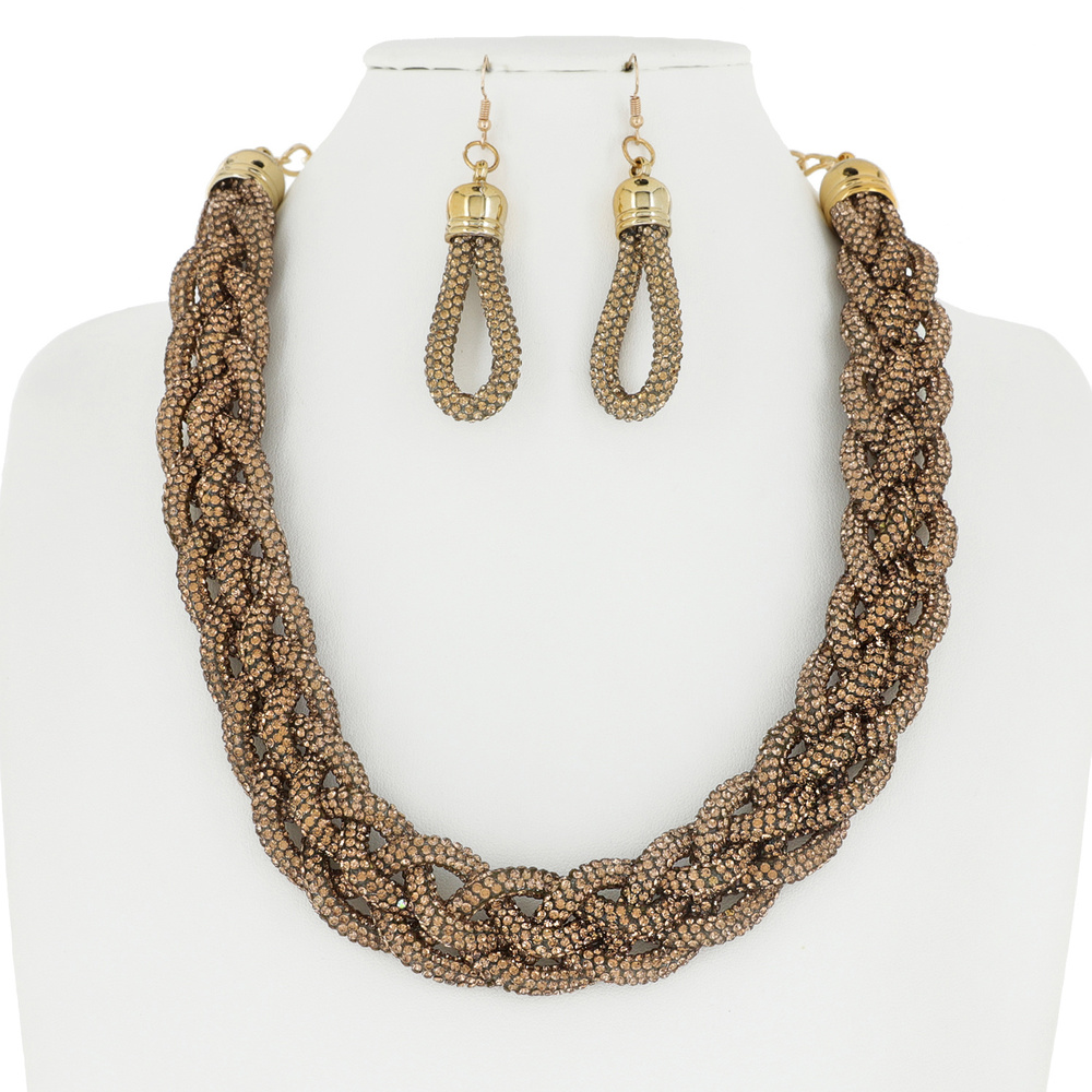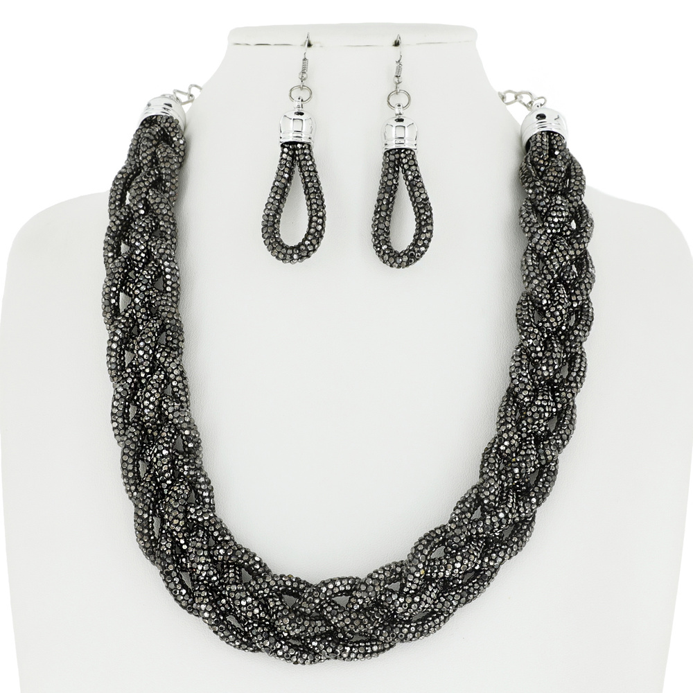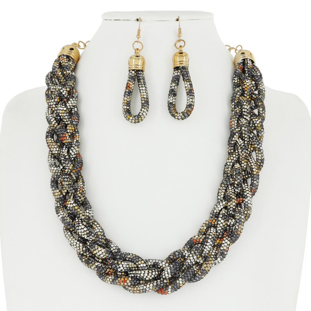 RHINESTONE BRAIDED BIB NECKLACE AND EARRINGS SET