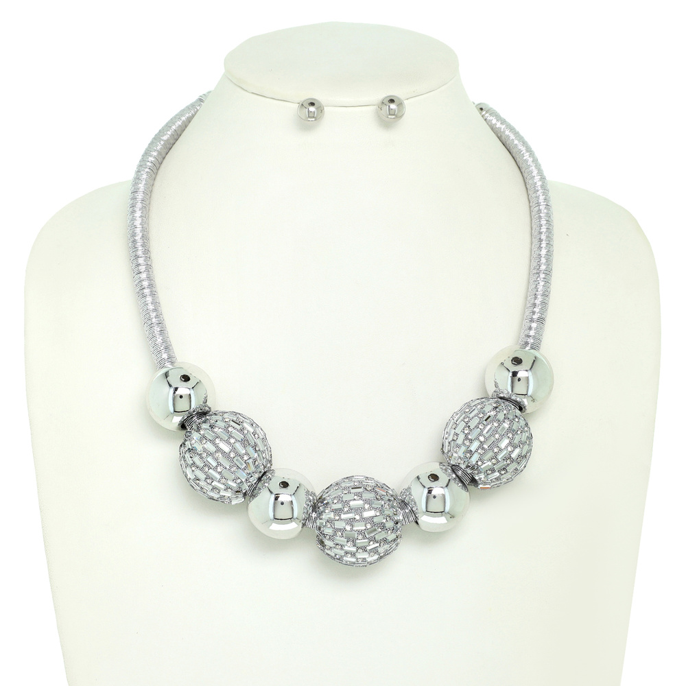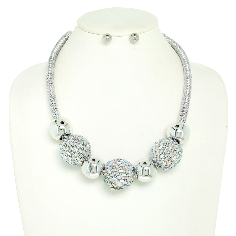 Rhinestone Disco Ball Beaded Tube Necklace Set