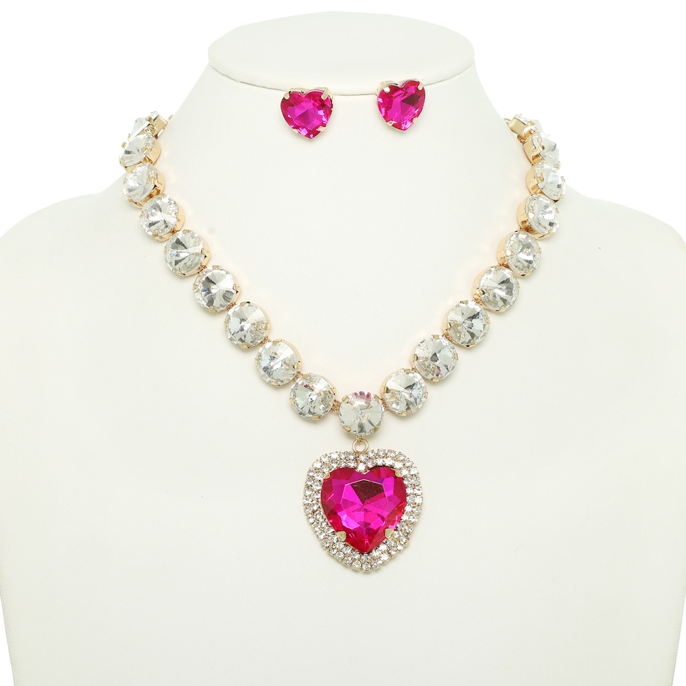 Crystal Heart Pendant Necklace Set