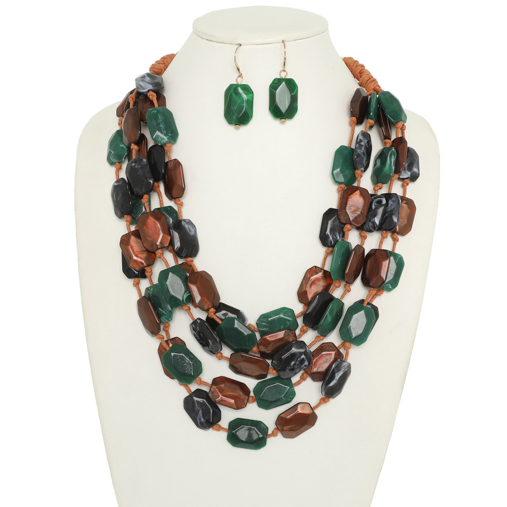 MULTI STRAND FACETED BEAD NECKLACE EARRING SET