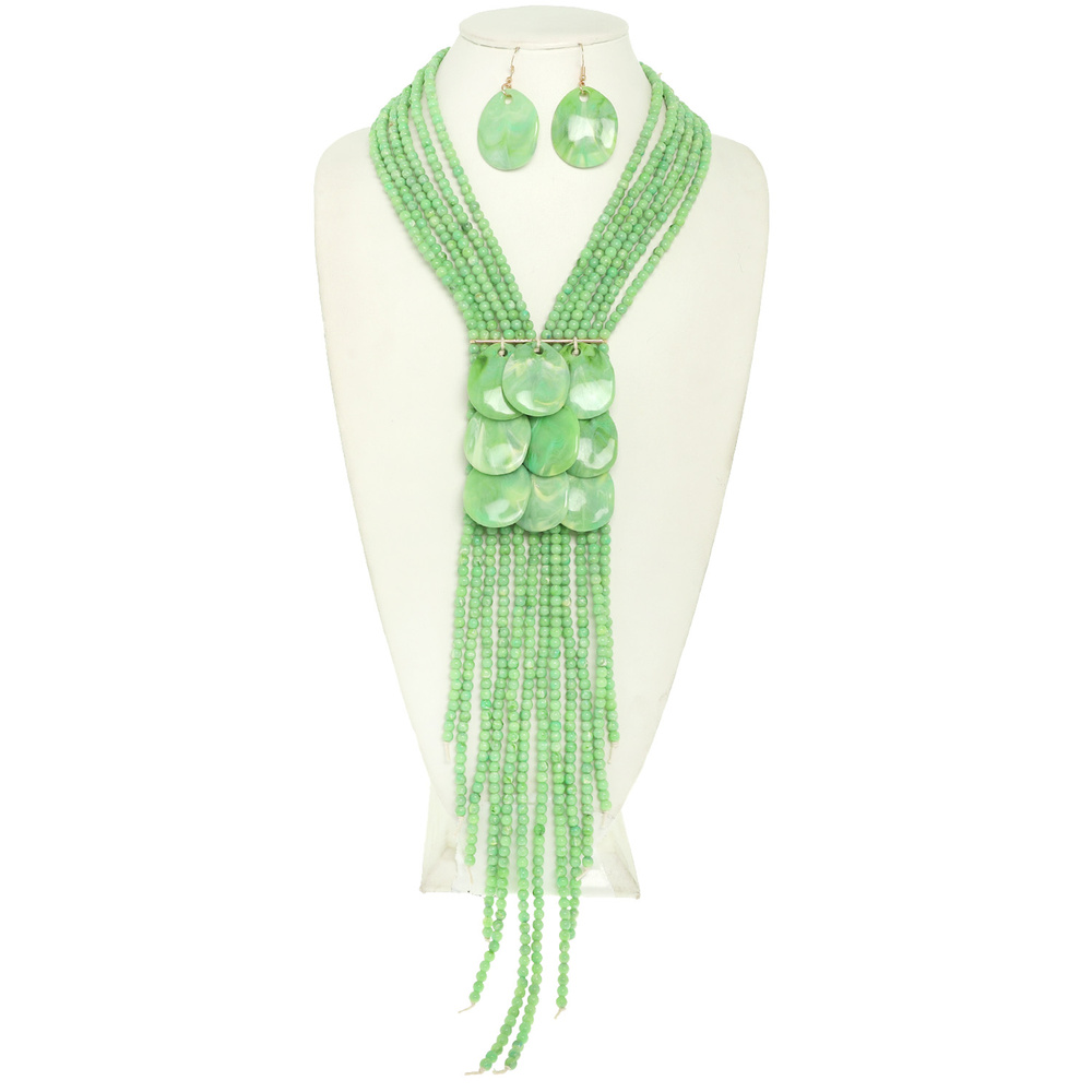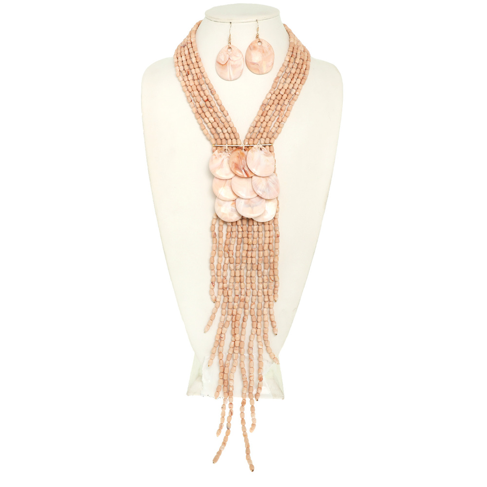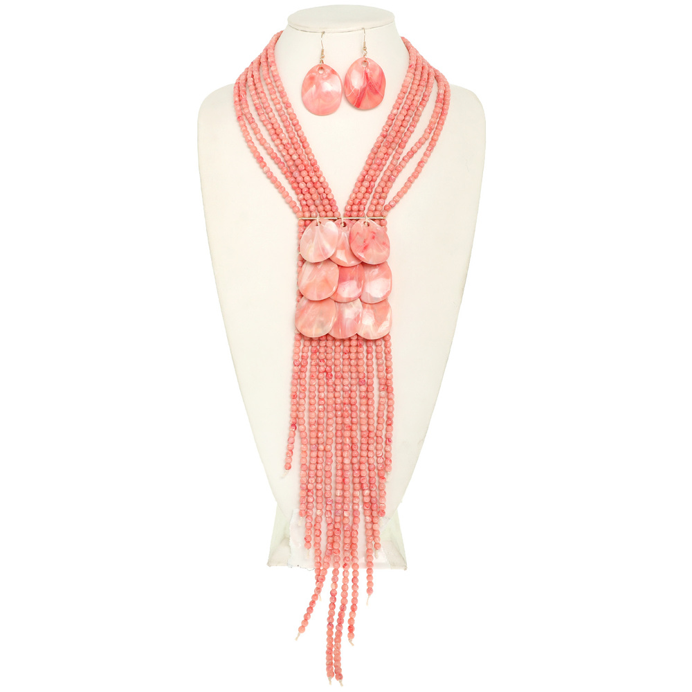PEARL BEAD FRINGE DRAPE NECKLACE EARRING SET