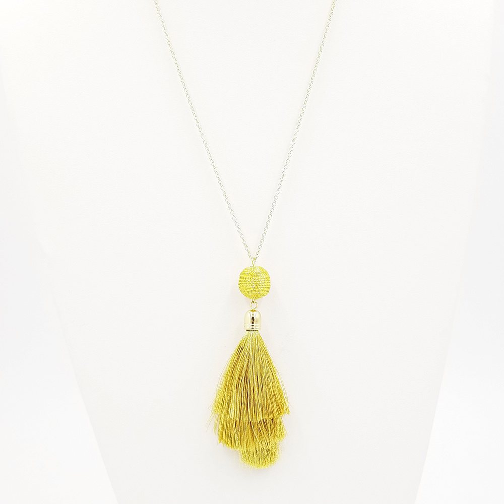 LONG CHAIN NK W/ STRING WRAPED BALL AND TASSELS