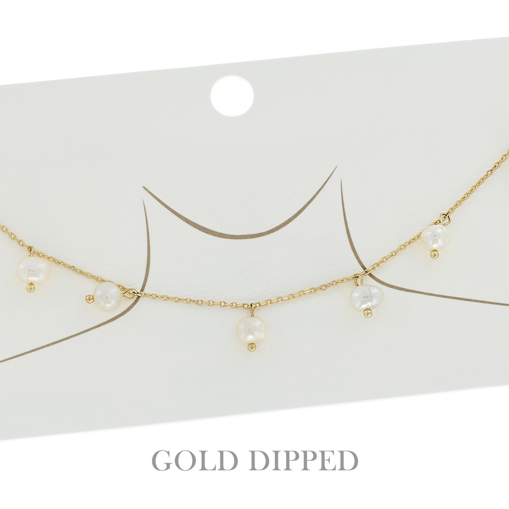 15" GOLD PLATED SYNTHETIC PEARL STATION ADJUSTABLE CHAIN NECKLACE IN WHITE AND YELLOW GOLD PLATTING made in KOREA