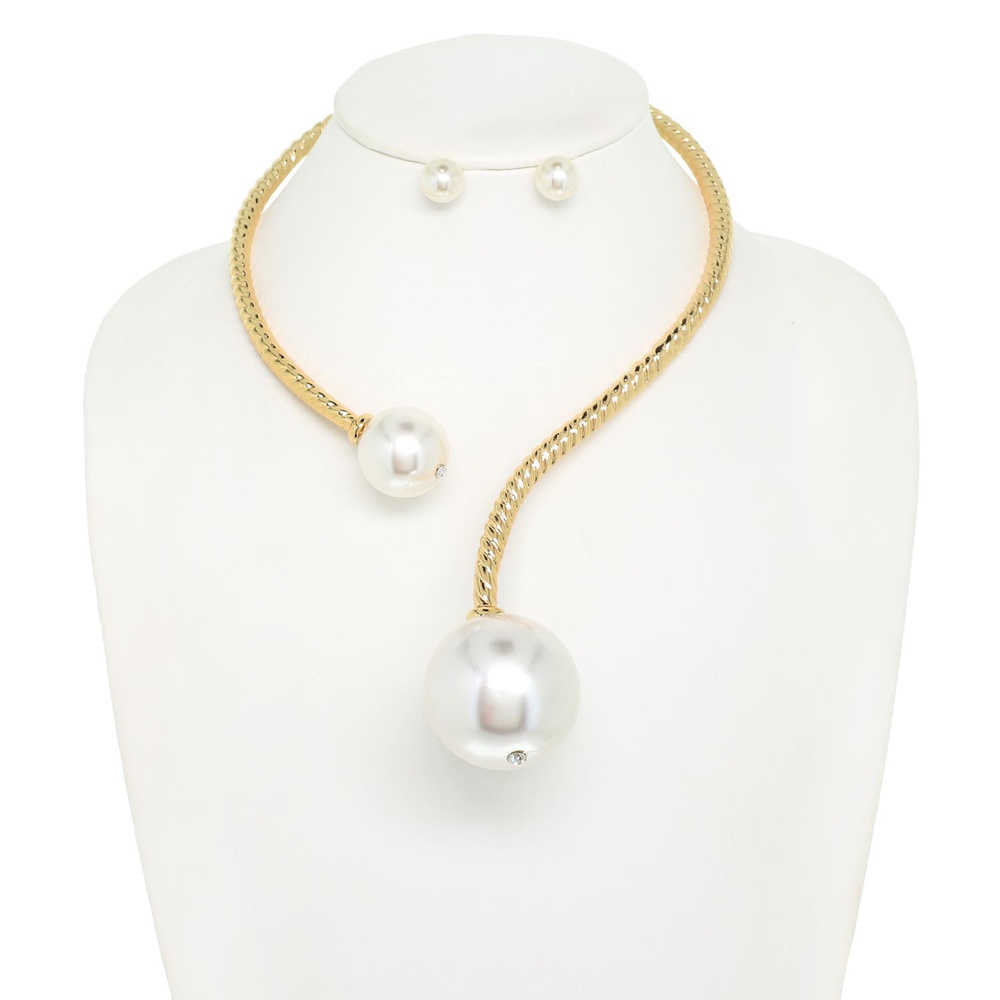TWO PEARL ASYMMETRICAL CABLE WRAP CHOKER NECKLACE SET