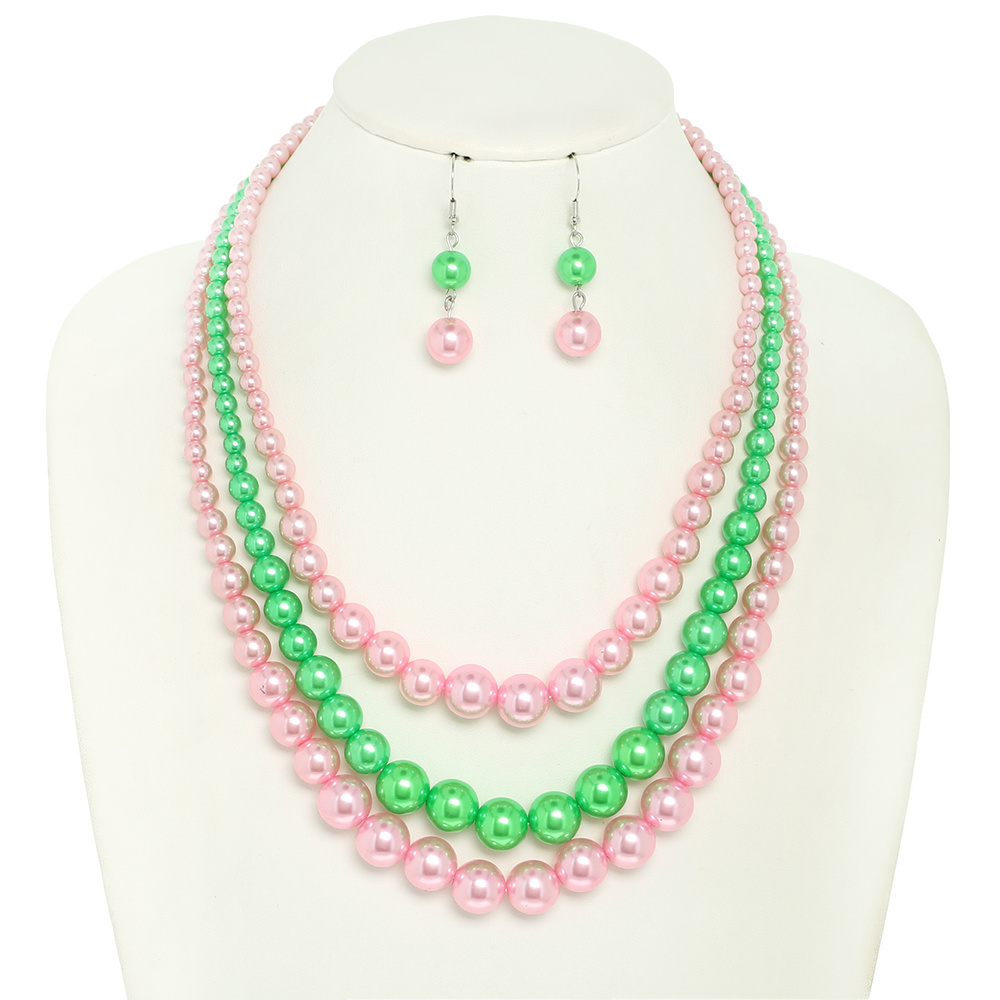 MULTISTRAND TWO-TONE PEARL NECKLACE EARRING SET