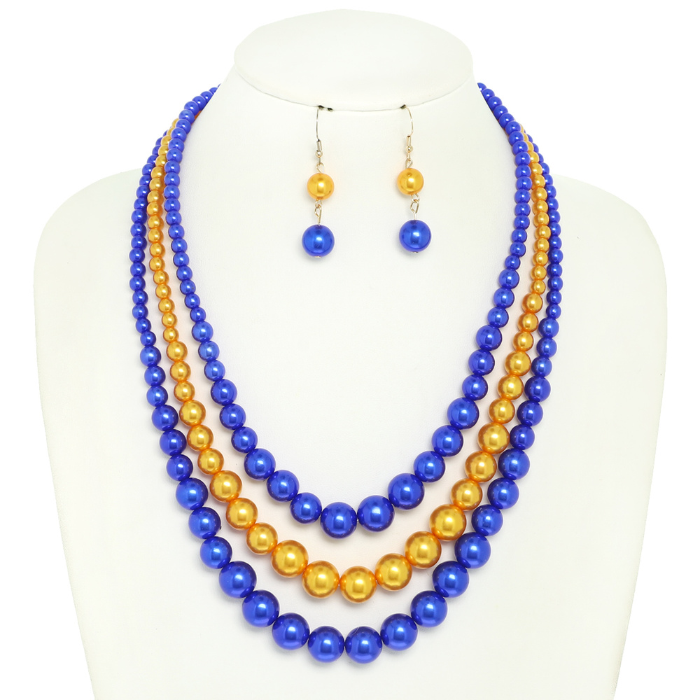 MULTISTRAND TWO-TONE PEARL NECKLACE EARRING SET