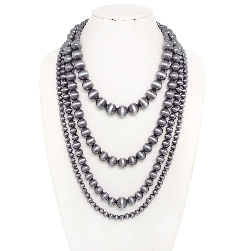 WESTERN NAVAJO MULTI STRAND SILVERTONE PEARL BEAD NECKLACE